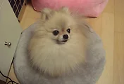 강아지 때 사준 방석과 뽀삐 1세한테 물려받은 집에서 산다고 불쌍히 여긴 (-_-;;;;) 내 동생이 사준 뽀삐 새 방석. 새 걸 엄청 좋아하는 신상견답게 자기 거라는 걸 알자마자 차지하고 있다.