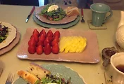 동네 벼룩에서 산 탁자보를 깔고 세팅~