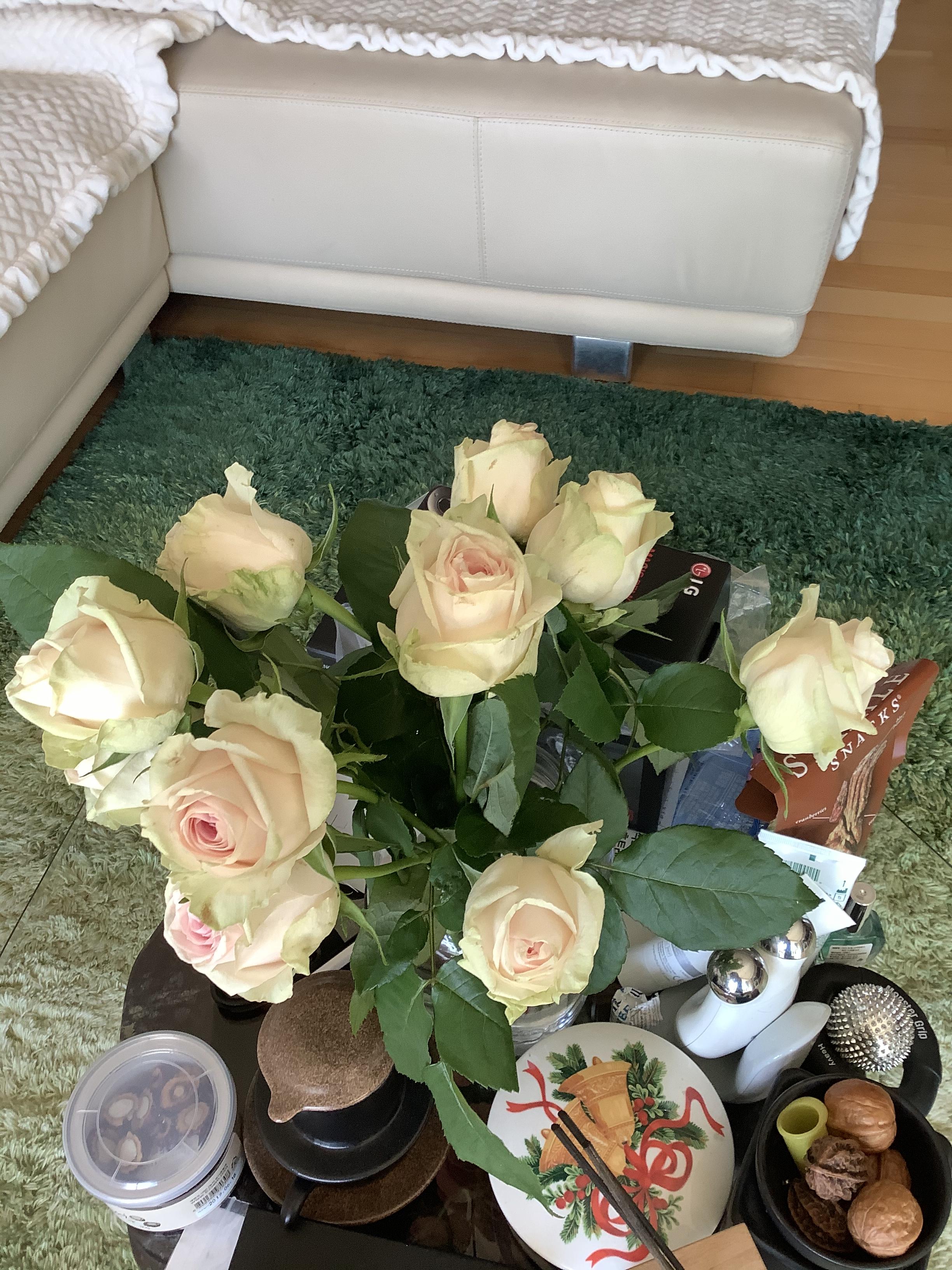 동생이 회사 앞 트럭에서 사온 친구와 깜짝 선물받은 꽃들.