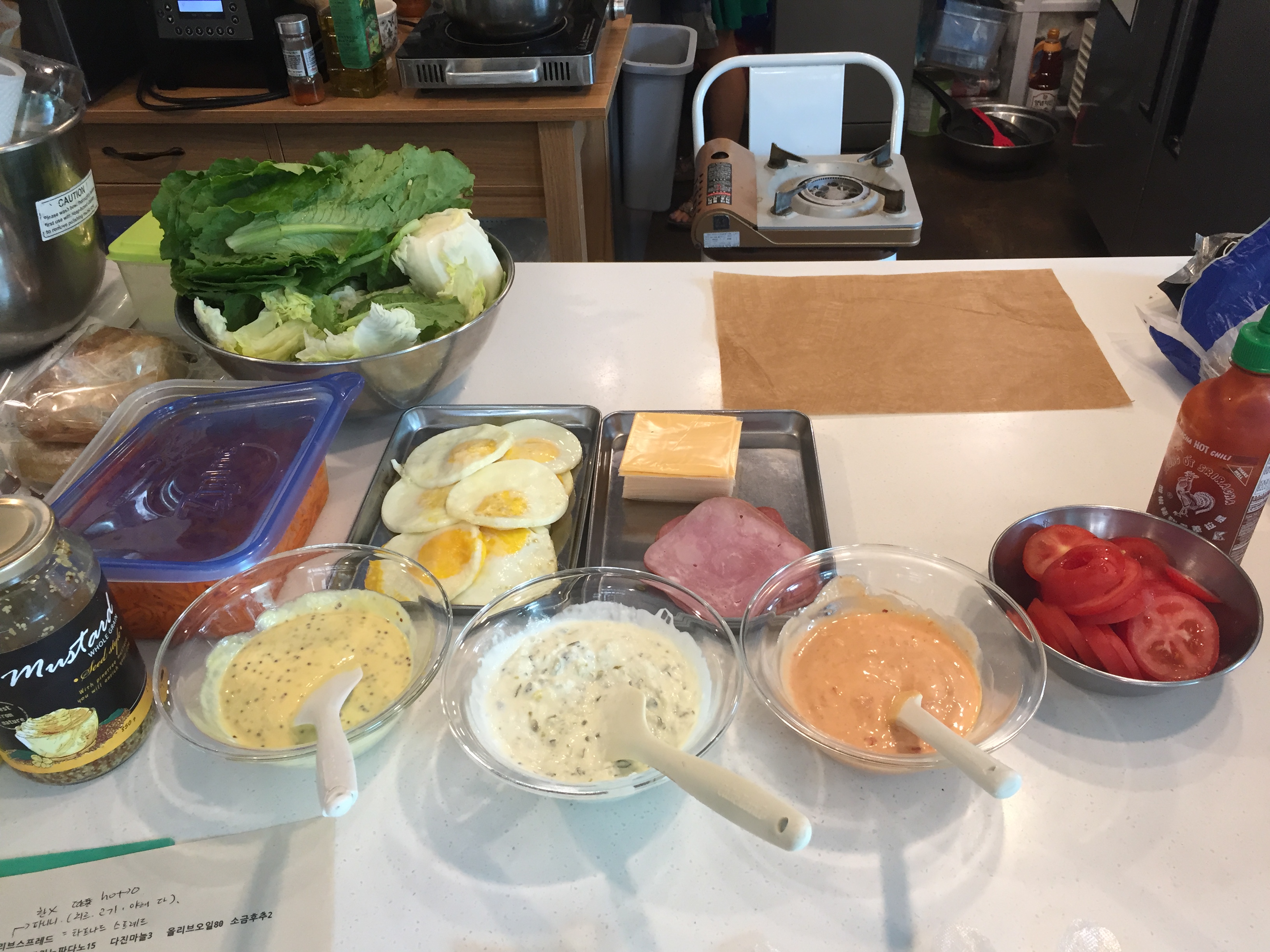 이렇게 샌드위치 만들기 위한 준비를 다 해놓고~