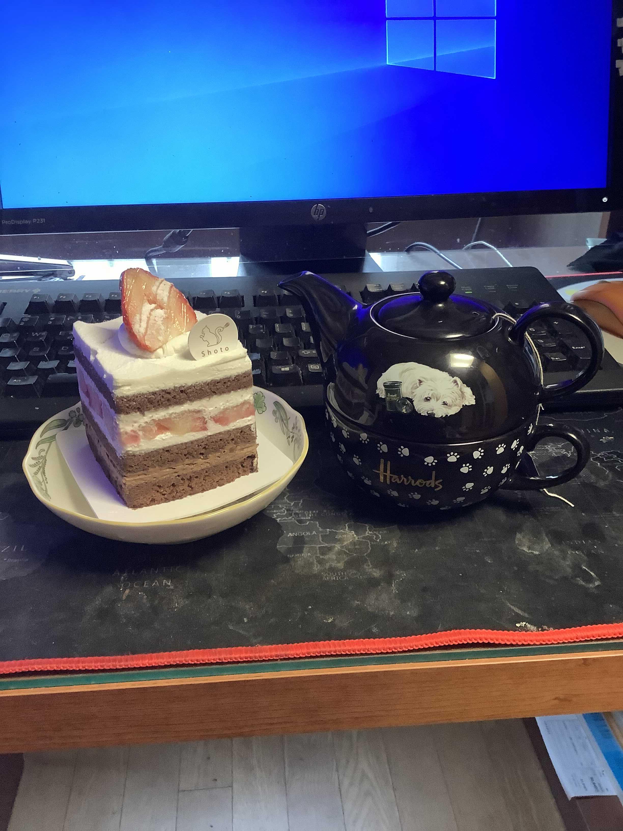 부지런한 동생이 친한 언니 생일 케이크 주문하면서 사온 쇼토의 초코딸기생크림. 아마 이 주에 다시 시즌 오픈한 메뉴였던듯. 작업실에선 늘 머그지만 모처럼 만나는 맛있는 케이크에는 차도 제대로 대접을 해줘야하지 싶어서 티포원을 꺼냈다.
