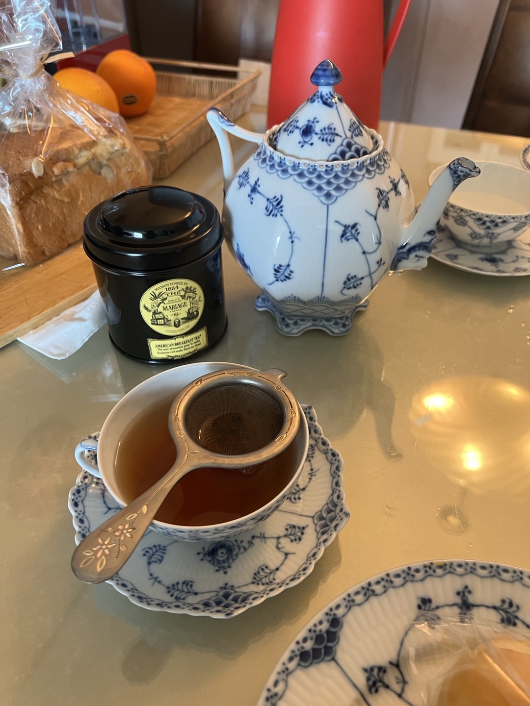 곁들인 홍차는 막 파리에서 귀국한 동생 친구가 공수해준 마리아쥬 프레르의 아메리칸 브랙퍼스트. 예전엔 티백이 있었는데 안 팔리는지 없어진 모양. 처음 티백 마셨을 때 홍차에서 커피향이 살짝 도는 게 프랑스인들이 생각하는 미국의 아침은 커피로군~ 했던 기억이 남. 다시 마셔보니 살짝 헤이즐넛 커피향이 도는듯 마는듯? 밀크티 마시려고 준비했으나 설탕이랑 더 넣고 끓이는 로얄밀크티는 몰라도 그냥 우유만 첨가하는 밀크티로는 별로일 것 같아서 패스.