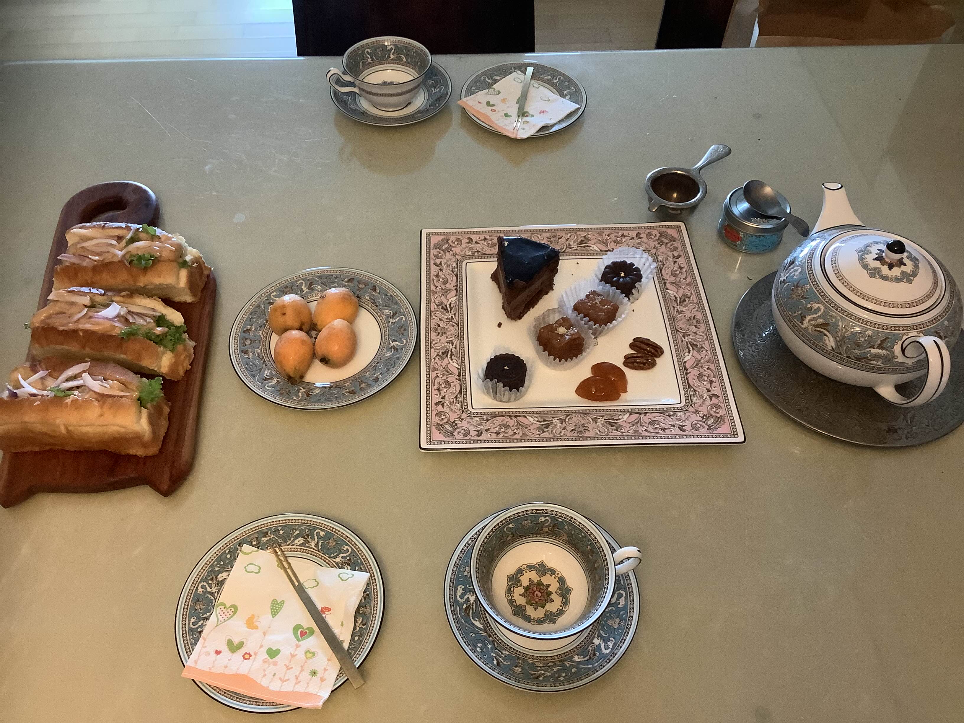 뚜군이 위문 공연 겸 놀러온 티타임. 나미쌤의 새우 샌드위치와 비파, 이런저런 다식과 함께 수다를 원없이 떨었던 어느 날 오후. 뜨거운 차 세팅을 보니 까마득해 보이네. 이래도 또 한두달 지나면 냉차 차려진 거 보면서 이랬구나 하겠지.