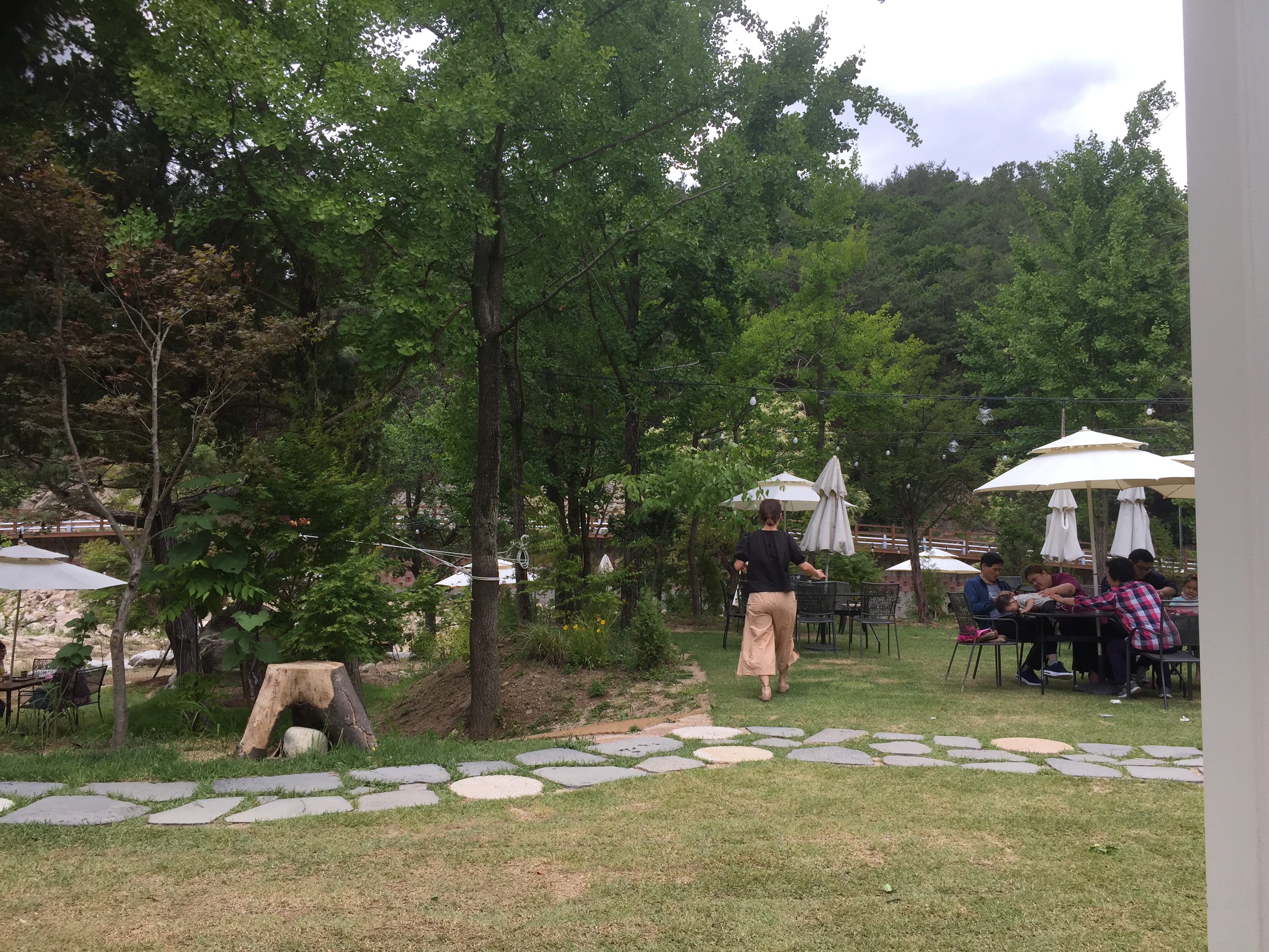 이건 은평 뉴타운에 사는 친한 작가 동생이 이사를 앞두고 마지막으로 초대해서 놀러간, 그 동네(라고 하지만 경기도)의 유명한 브런치 카페에서. 본래 계곡물도 흐르고 한다는데 워낙 가물 때라서 마른 계곡이었다.