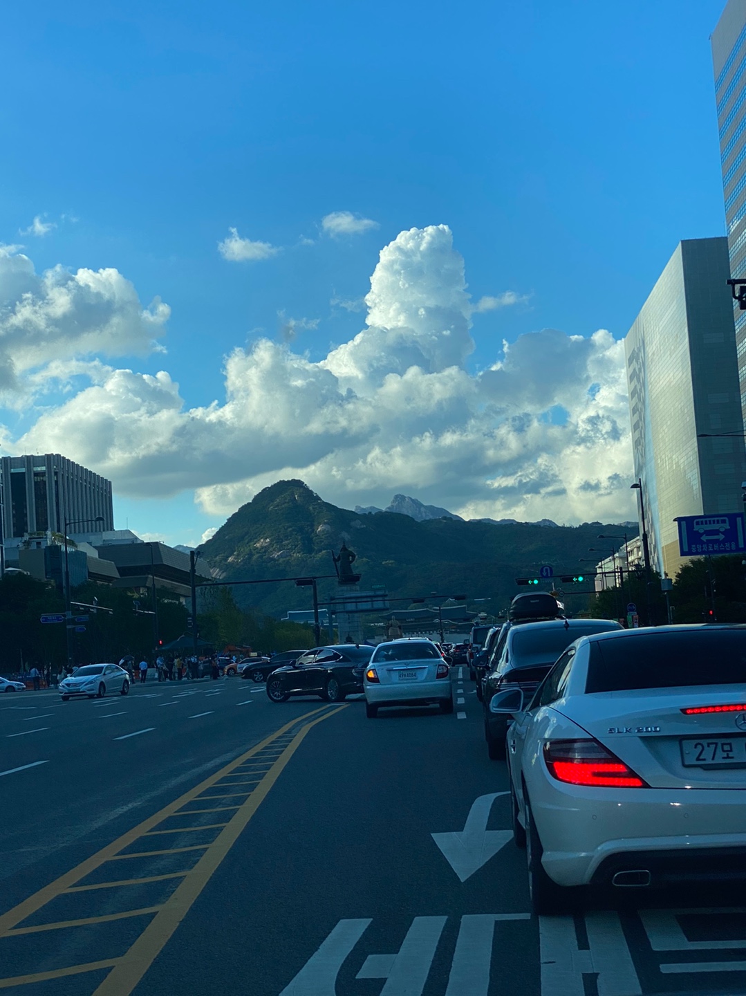 그림 같은 날씨였던 날. 신호등 기다리면서 찍은 사진.