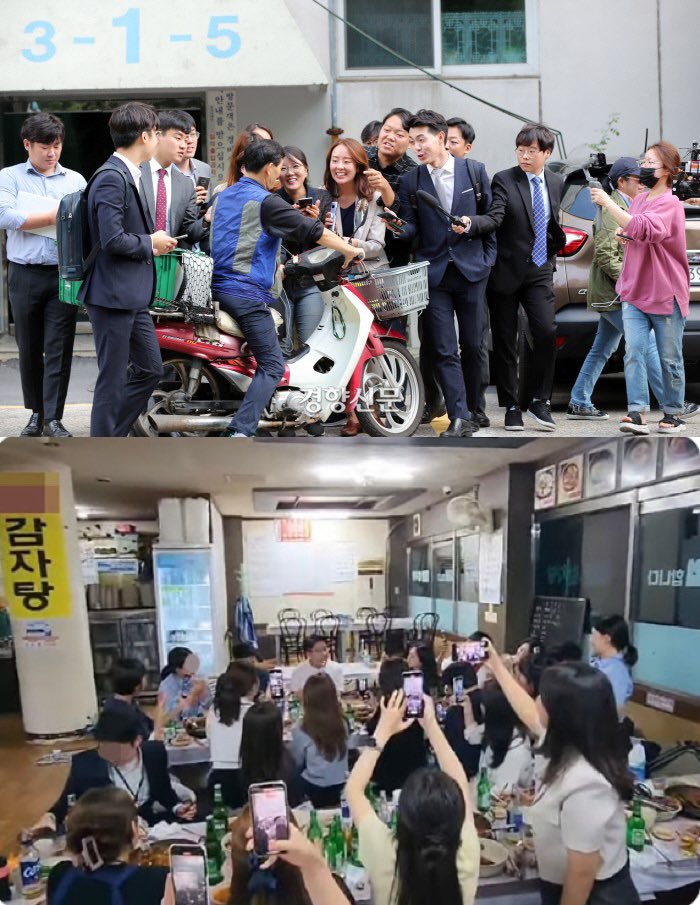 “감자탕 처먹고 술 마시고 권성동이 노래하자 박수치고 환호하던 기레기들이 문제가 되자 기사내리라고 난리를 쳤다네. 썩어 빠진 것들.. 그래서 영상 또 올린다..”