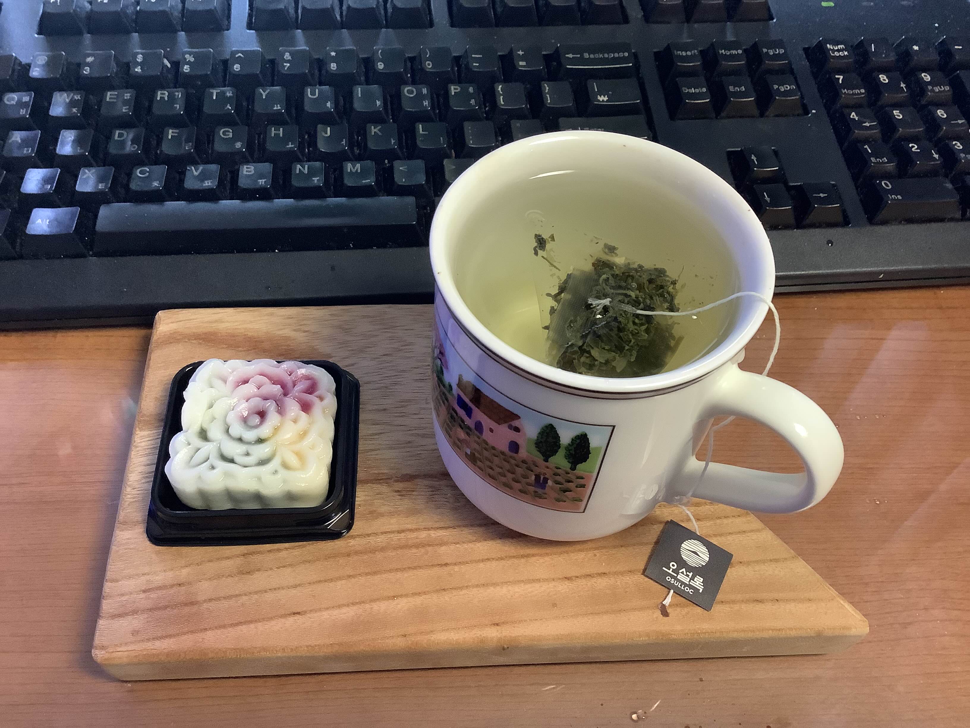 오설록 제주 난꽃향 녹차. 화장품맛이 좀 심하게 난다. 얼그레이 계열 취향인 내게도 쫌… 곁들인 건 동생표 아이스 월병. 뭔가 참 희한하니 못 먹어본, 그러나 맛있는 다식~ 다음 차모임을 위해 냉동실에 얼려놨음~