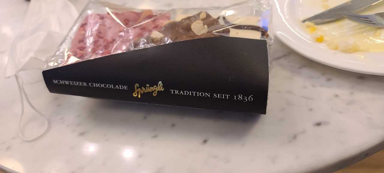 흘려쓴 필기체라 장담은 못 하겠고 SPRIINGLI ? 로 보이는 1836년에 문 연 가게의 초콜릿.