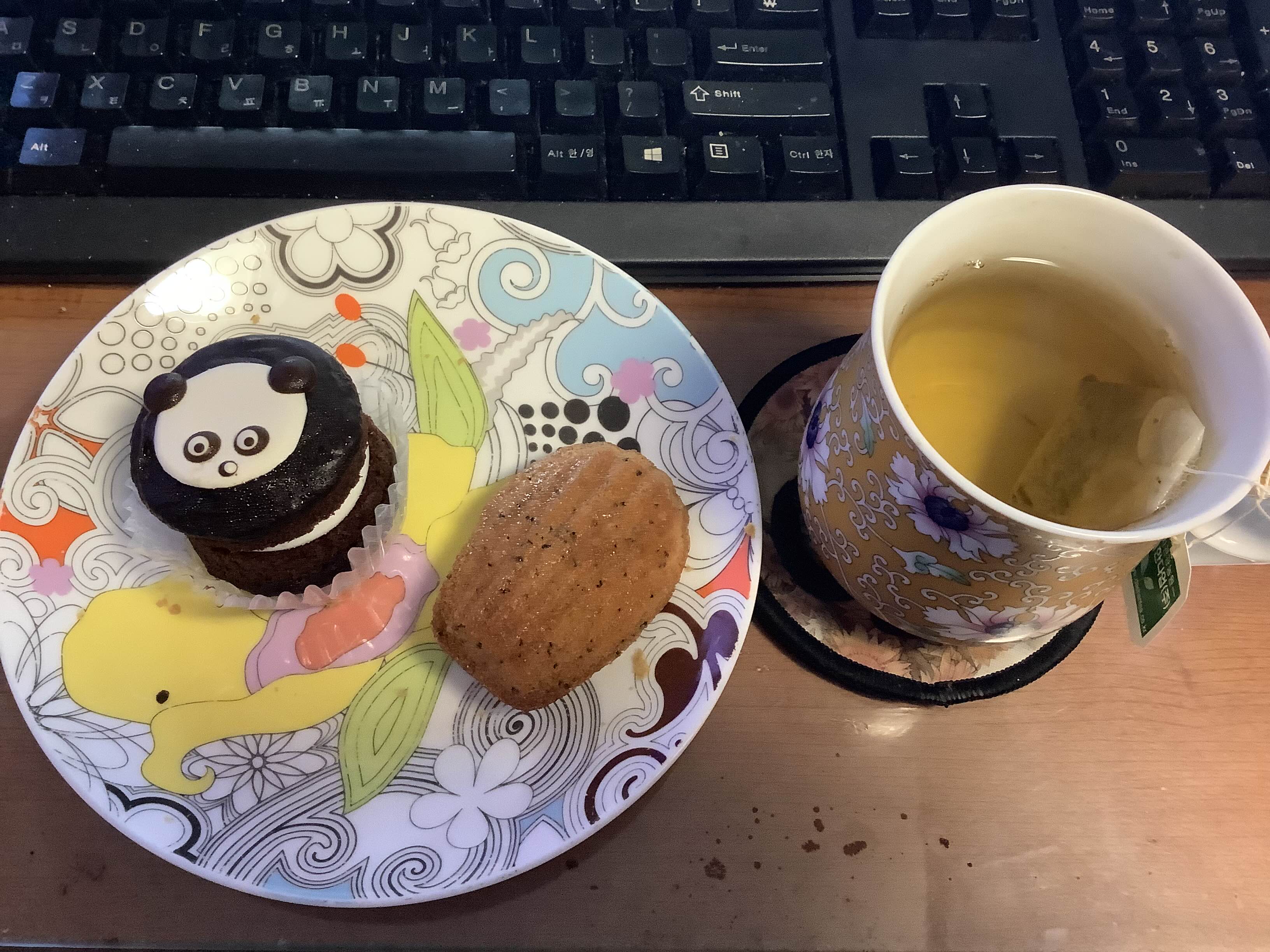 역시 동생표 얼그레이 마들렌과 속의 머시멜로까지 직접 만든 초코파이. 팬더는 기성품. 사진에 계속 등장하는 저 머그는 필터도 있는데 계속 티백만 담그고 있군. 작은 티팟 하나 채울 정도로 넉넉히 들어가서 물 보충하러 왔다갔다 하기 귀찮은, 게으른 내게 가장 사랑받다 보니 사진에도 얘만 등장하는 걸 모아 놓으니 알겠네. 작업실에는 몇 개 안 되지만 다른 애들도 좀 돌려가면서 이용해줘야겠다.