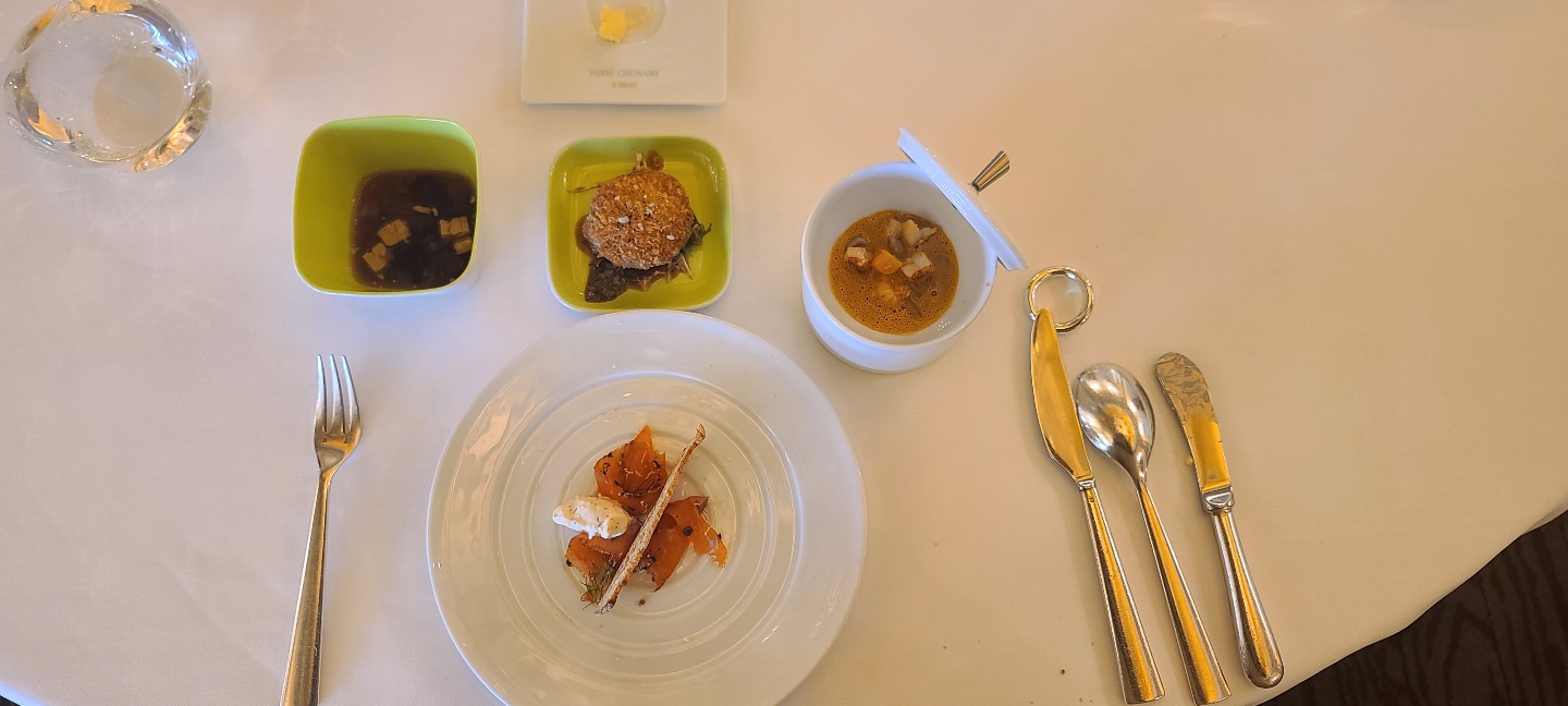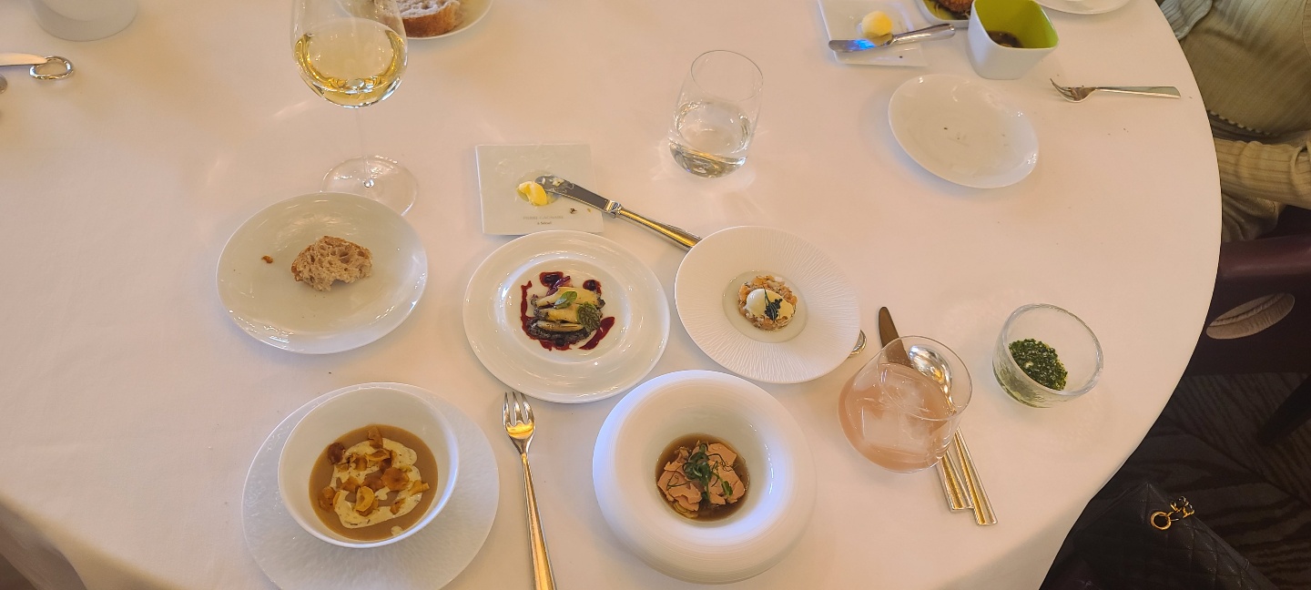 점심 메뉴의 두번째 코스. 여긴 다른 파인 다닝과 달리 이렇게 한꺼번에 차려줌. 스프들도 있는데 하나씩 나오는 게 더 낫지 않을까 한데... 뭐 나름의 이유가 있겠지.