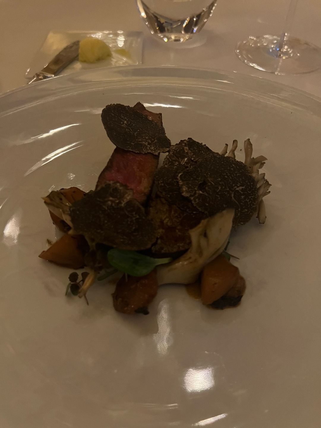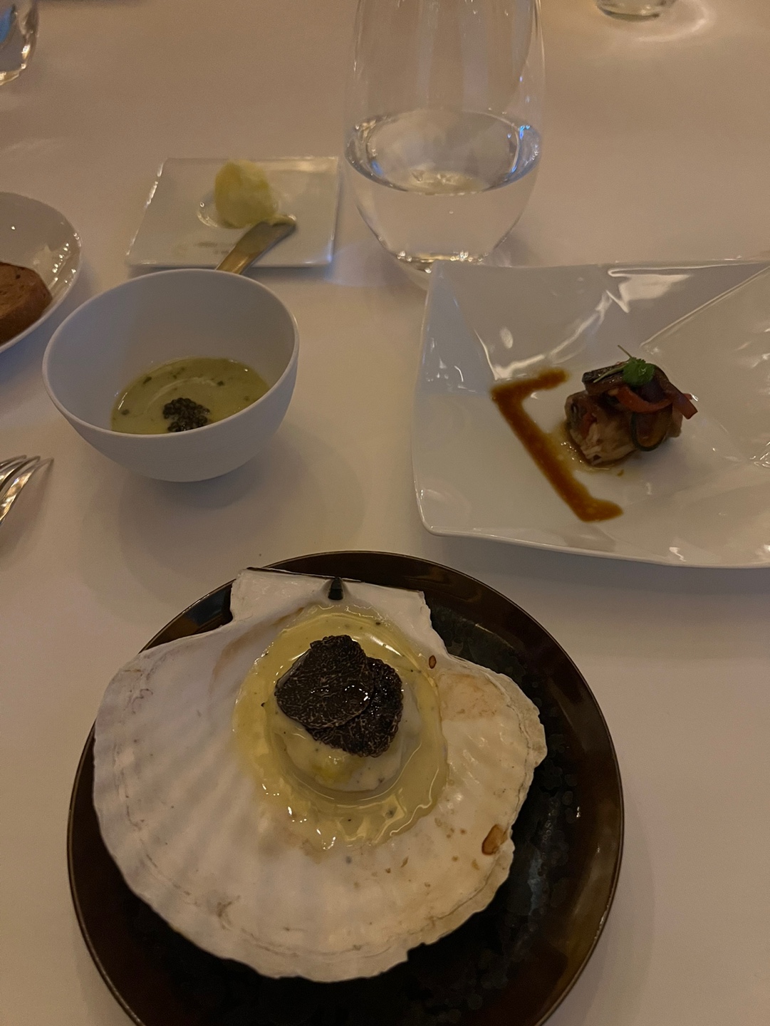 집에서 먹는 것처럼 인심 좋게 팍팍 슬라이스한 트러플 버섯과 가리비의 조합은 말하면 입 아픔.  소스 맛있다.  캐비어 얹은 스프링롤은 중국 음식 느낌이 나면서도 특이하니 맛있었고...