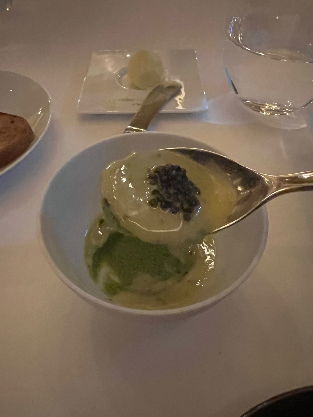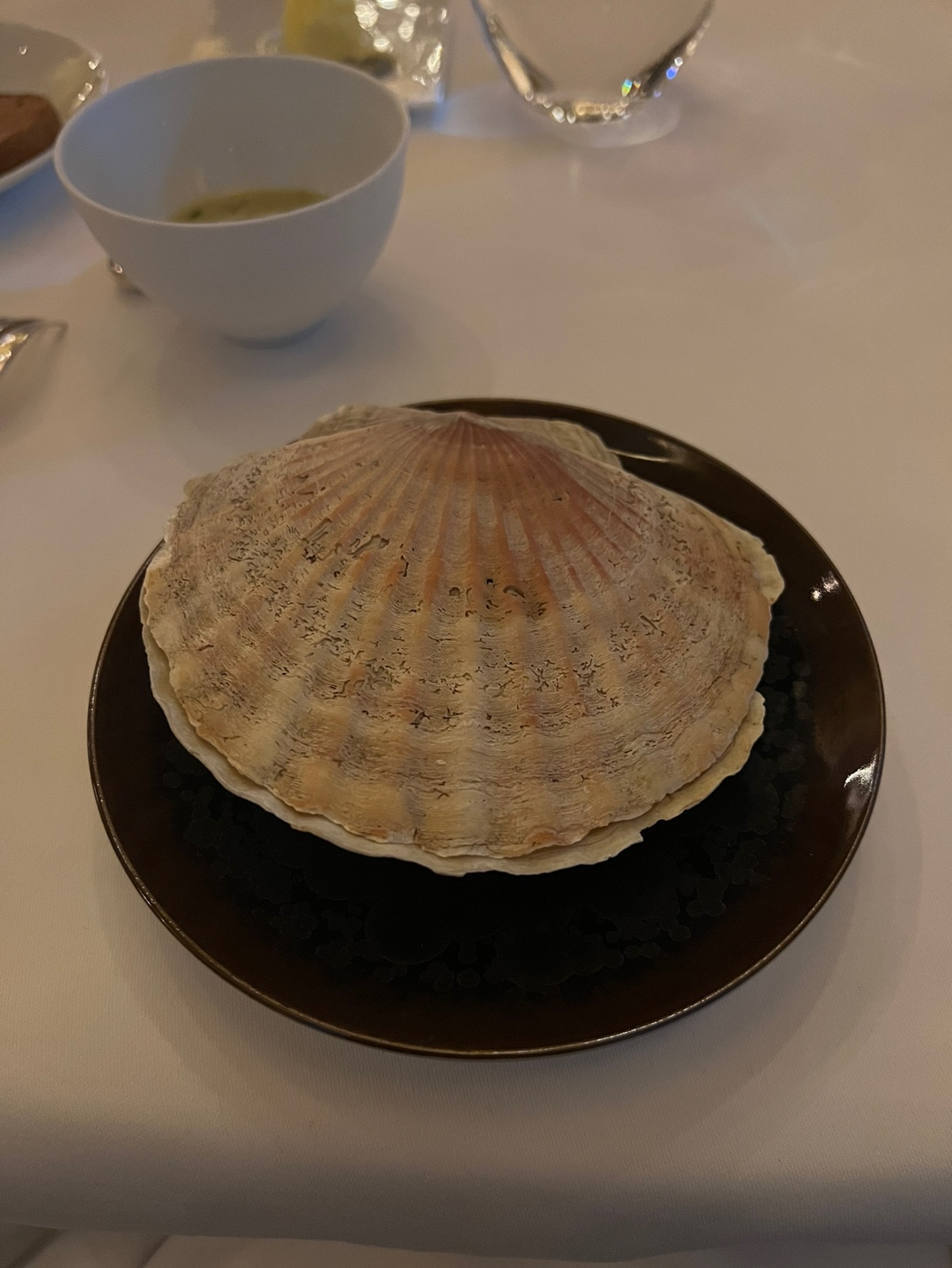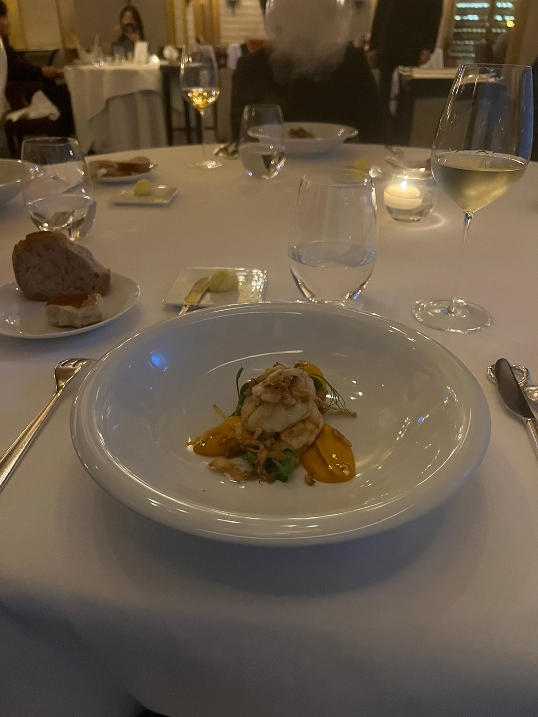 돔을 씌워서 나왔는데 그 사진은 안 찍고 놓쳤음.  왕새우를 아주 특이하게 조리해서 식감도 맛도 굿~  이날 먹은 요리 중에서 이게 제일 근사했다.