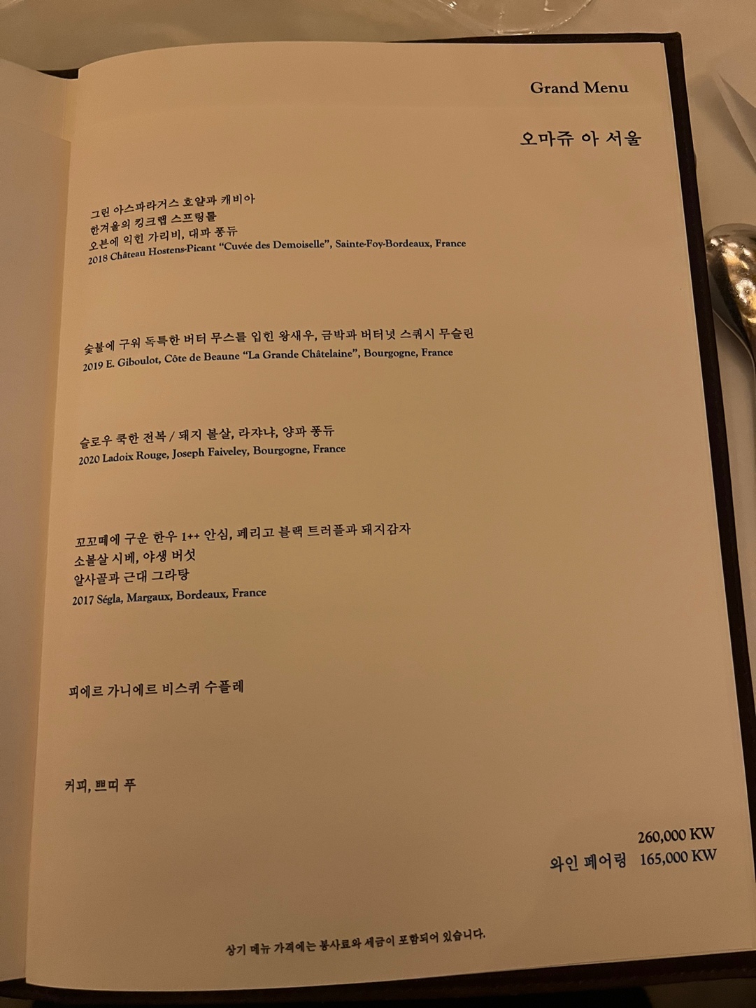 세번째 와인 피노누아. 무난하니 괜찮았음. 요리와 마리아쥬도 딱이었고.