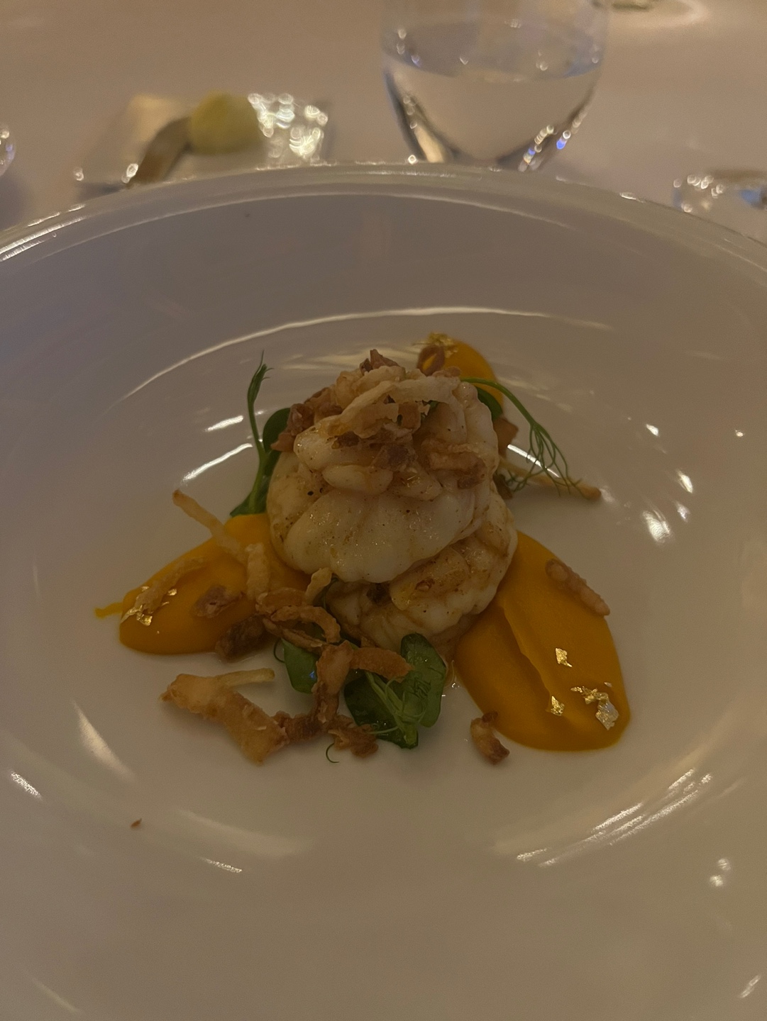 돔을 씌워서 나왔는데 그 사진은 안 찍고 놓쳤음. 왕새우를 아주 특이하게 조리해서 식감도 맛도 굿~ 이날 먹은 요리 중에서 이게 제일 근사했다.