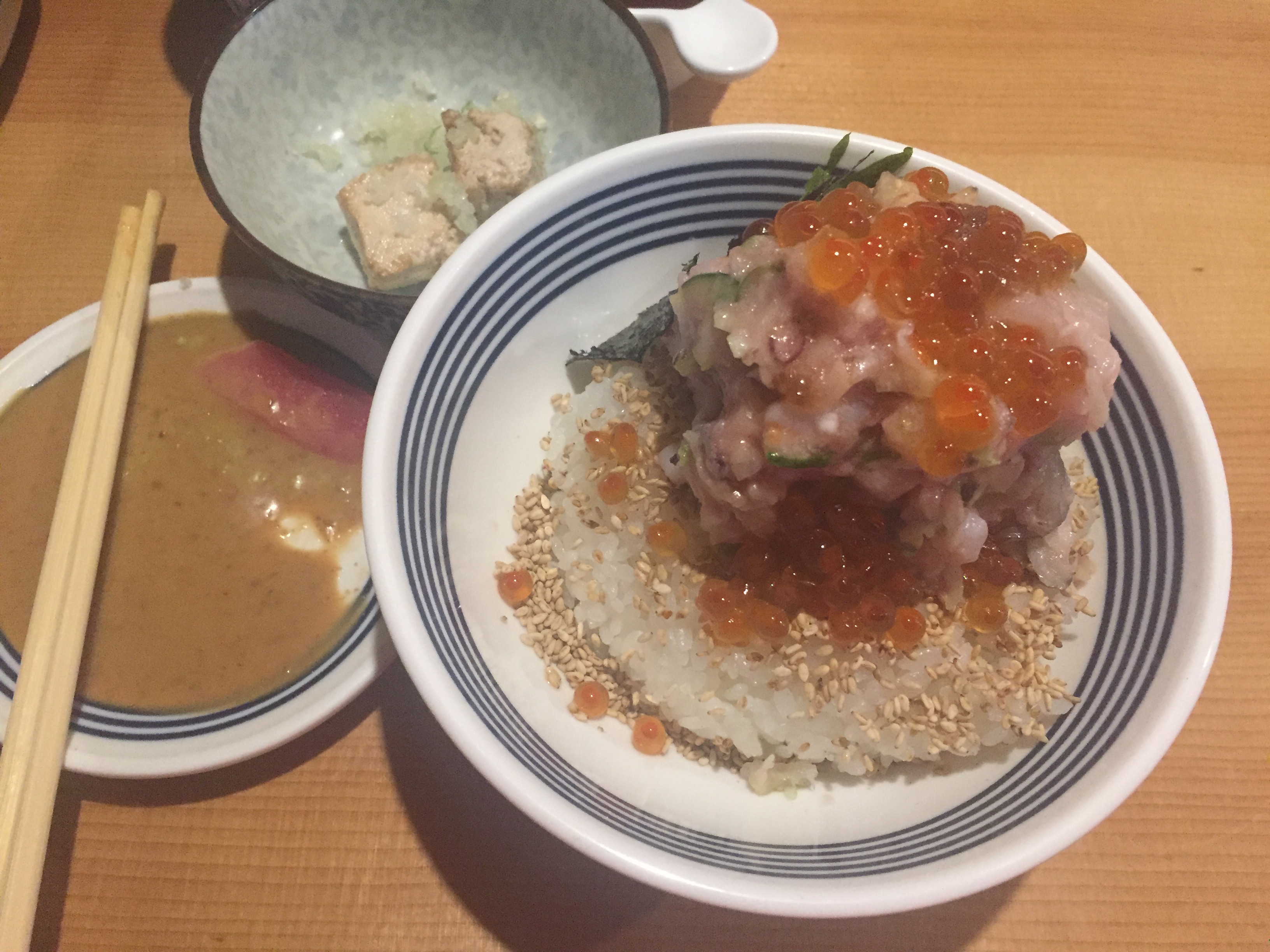 게살이며 우니며 여러가지 메뉴가 있었지만 처음 가는 곳은 거기 기본을 먹어봐야 하는 고로 제일 기본이 기요 덮밥을 주문. 숙성회와 알을 올린 덮밥인데 밥을 잘 지어서 고슬고슬하니 맛이 괜찮았다.