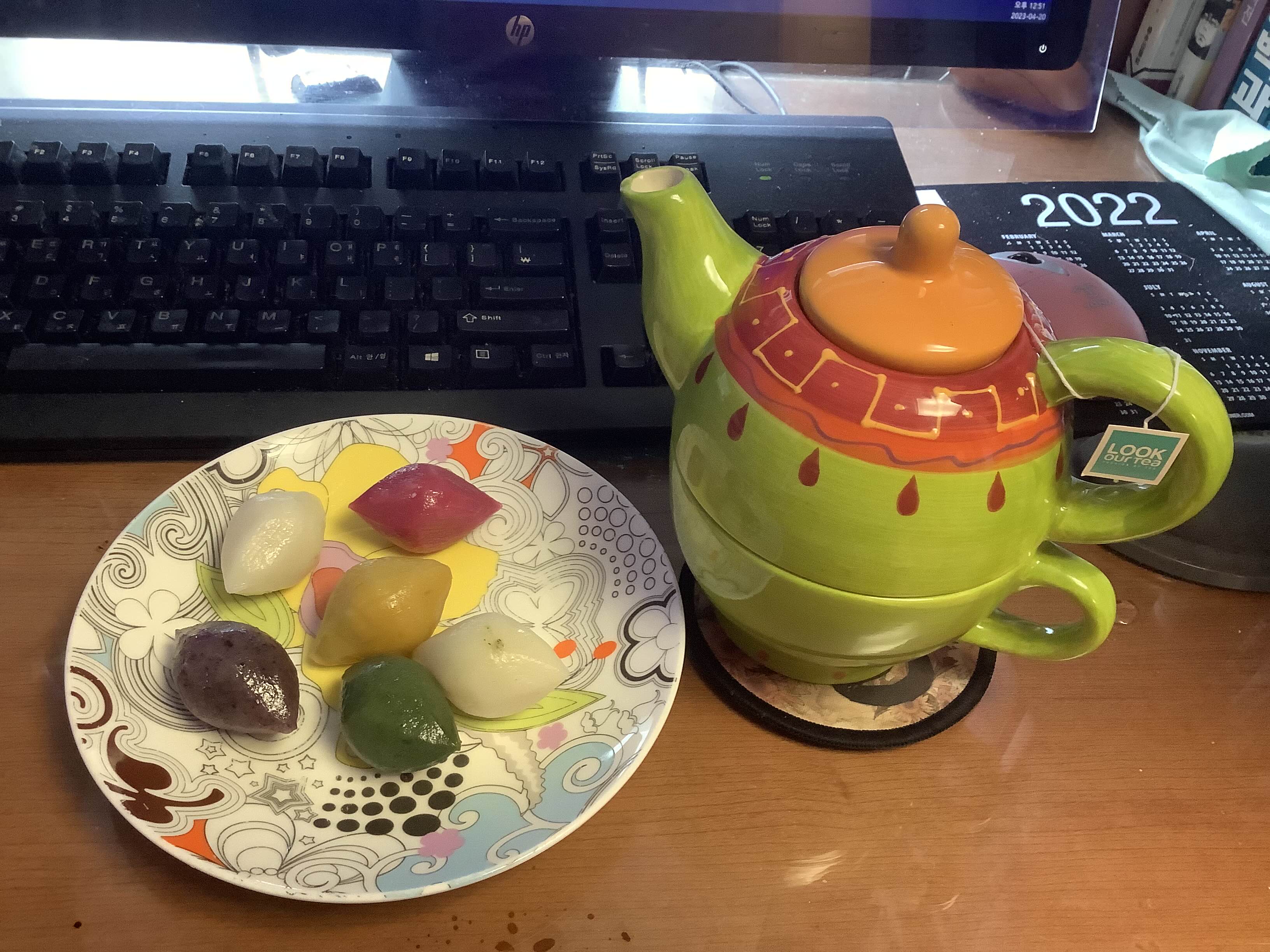 일단 풀을 다 먹은 다음 코스로 시장에서 사온 송편과 우롱차.