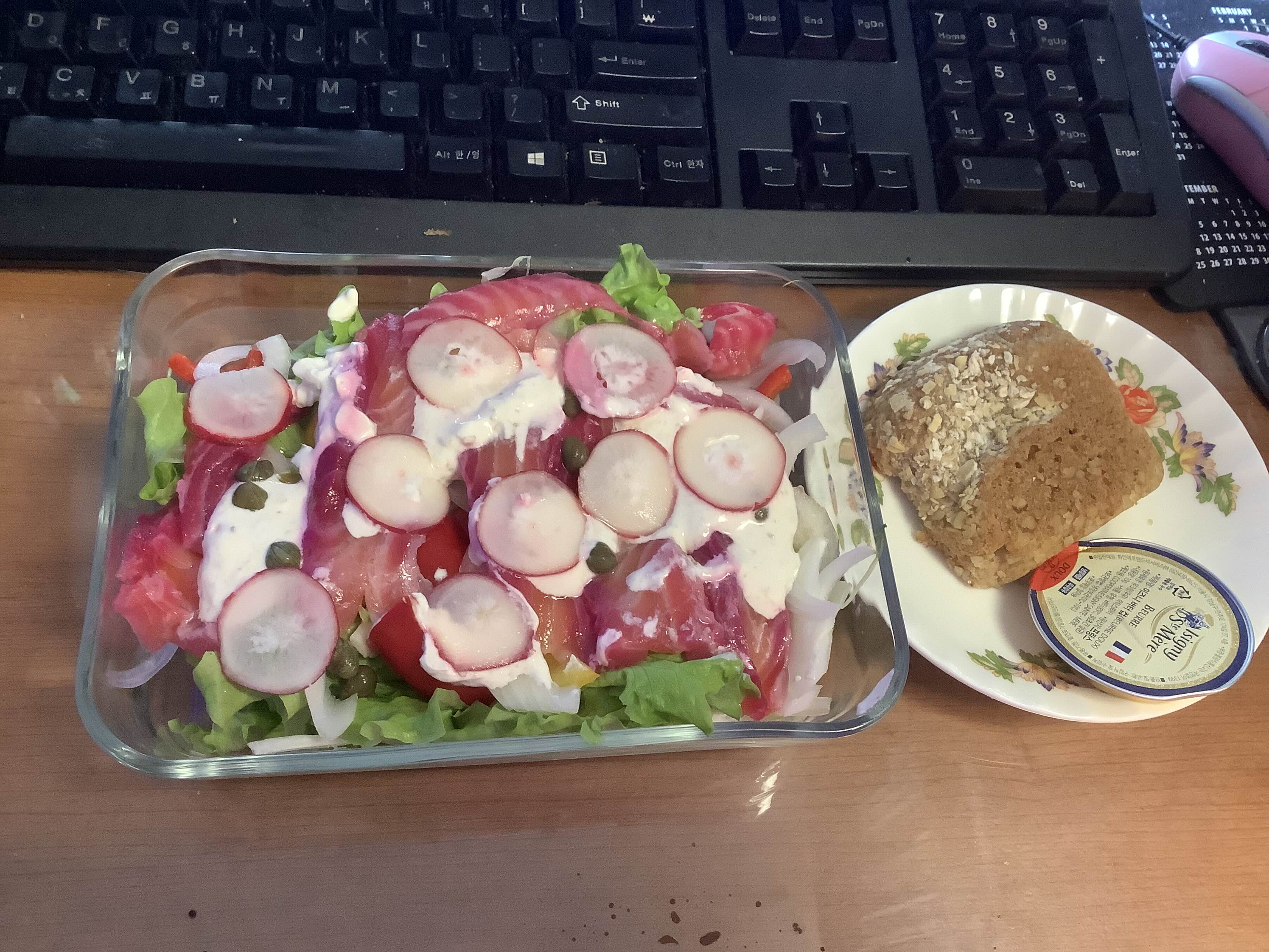 그라브락스가 정말 맛있어서 얼리기 전에 한번이라도 더 먹자는 마음으로 샐러드와 잡곡빵.