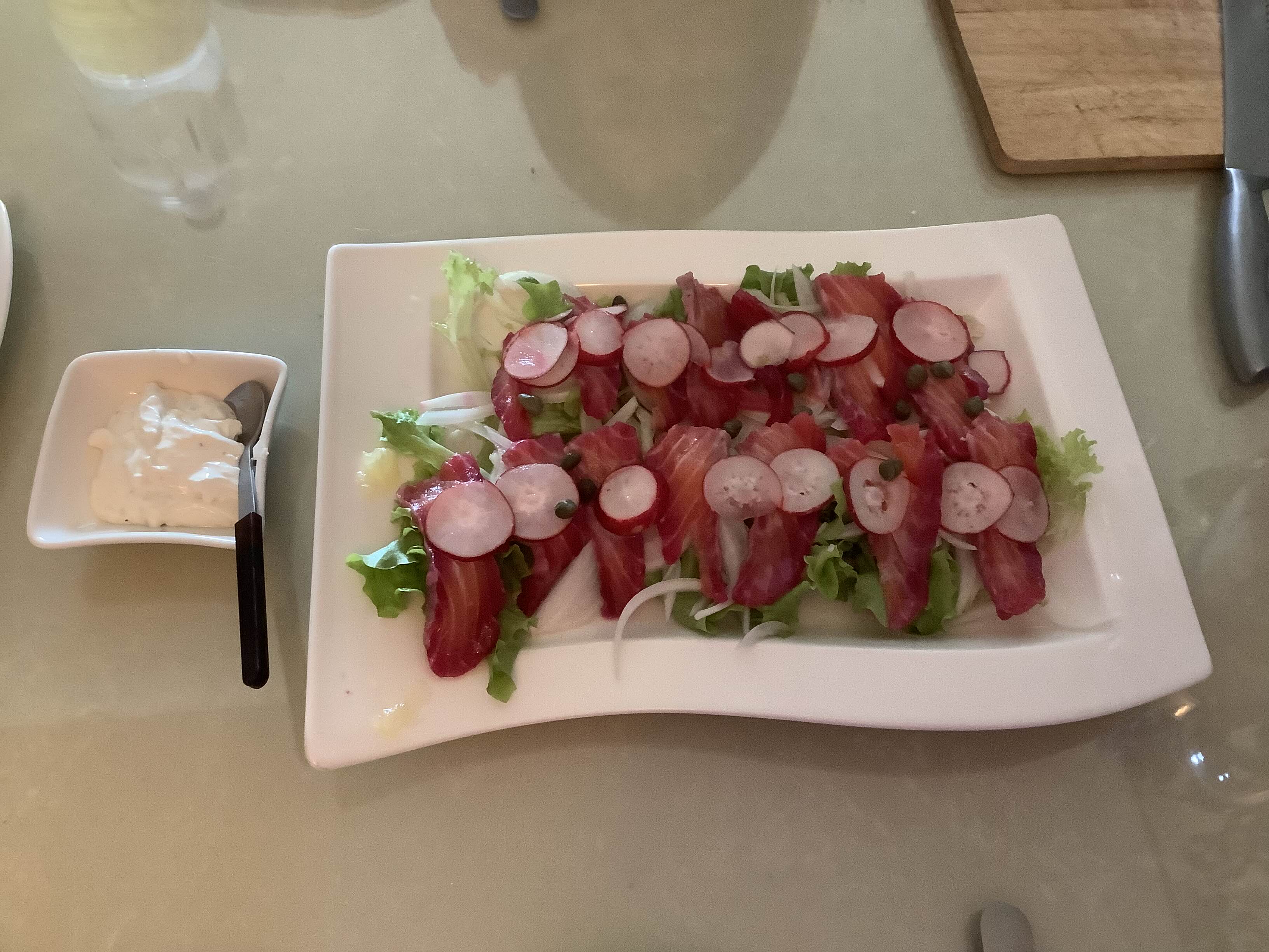 올해 첫 그라브락스 완성된 거 시식~ 간만에 하는 거라 각 잡고 비트까지 갈아서 넣었더니 색이 곱게 물들었다. 맛은 중간에 맛 봤을 땐 살짝 단 것 같아서 걱정했는데 딱 적당. 레몬껍질은 좀 더 많이 넣어도 될 것 같다. 곁들인 홍차는 마리아쥬 프레르의 실론. 티백 정말 사랑함~☺