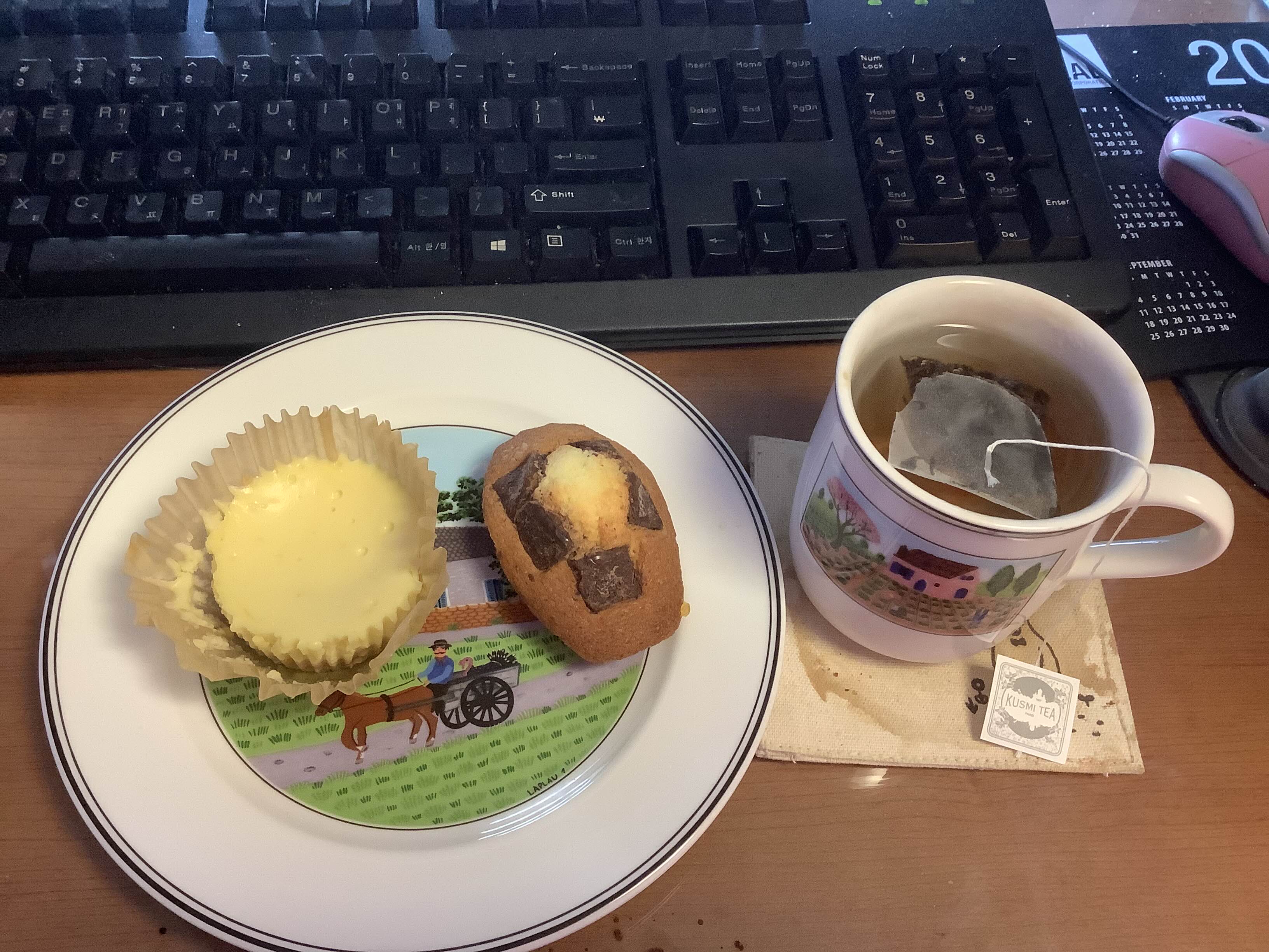 같은 날 다른 간식인 밀도의 레몬 파운드와 해로즈 다즐링.