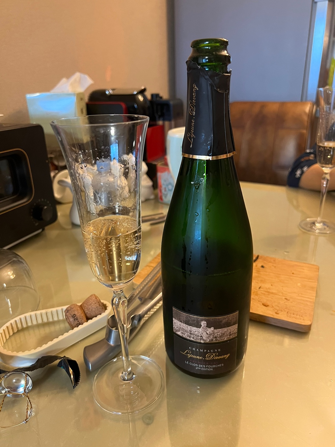 별난화린 농장의 아스파라거스와 성심당 명란 바게뜨를 안주로 샴페인 디너~ 채즙이 팡팡 터지는 맛있는 아스파라거스와 샴페인 잘 어울림.
