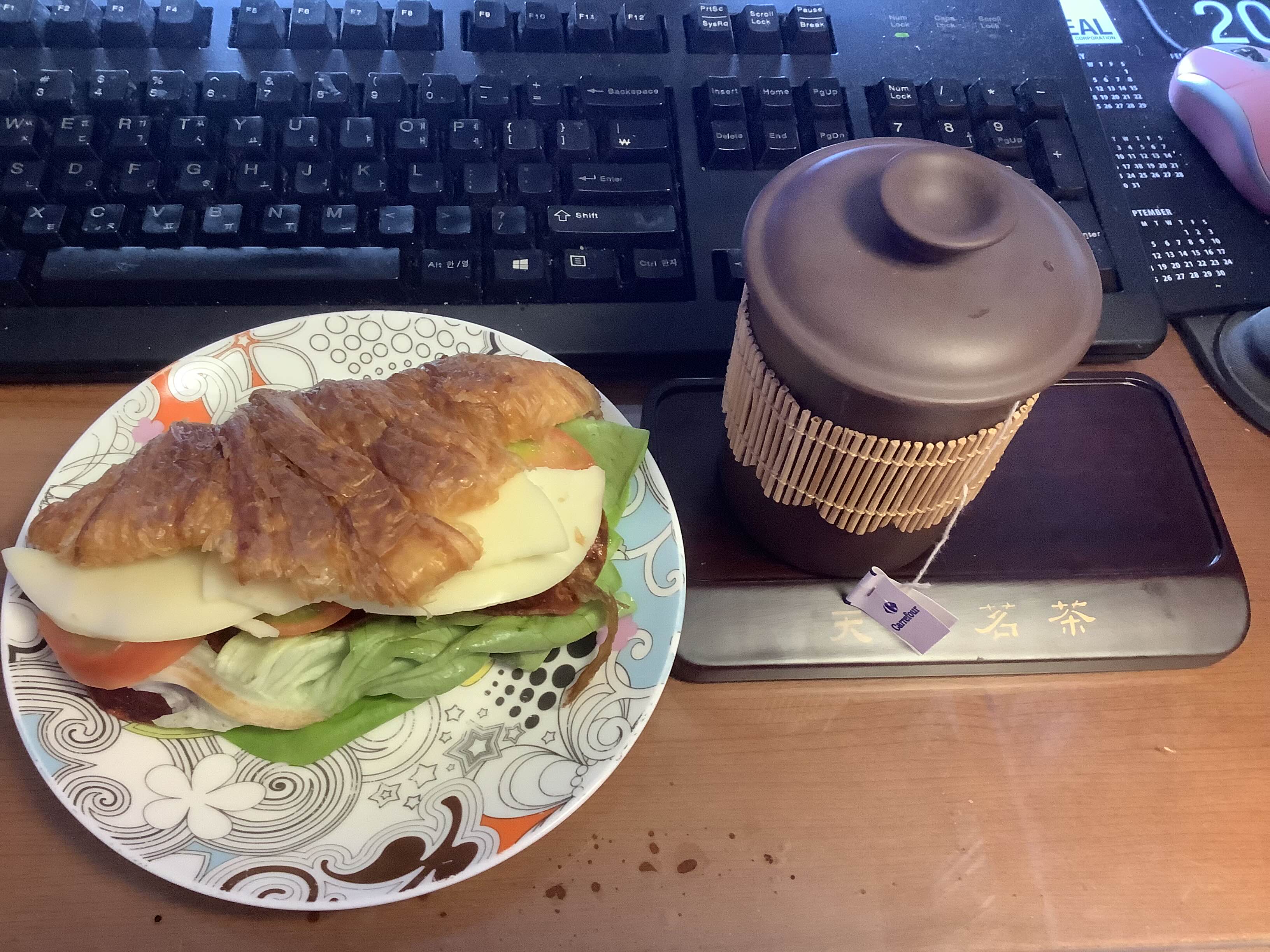 ㅌ님께 선물받은 자스티 티백을 바로 우려서 크로와상 샌드위치와~ 통 크게 이번에도 벌크 100짜리를 하사하셔서 여름 내내 팍팍 냉침과 아이스티로 애용할듯.