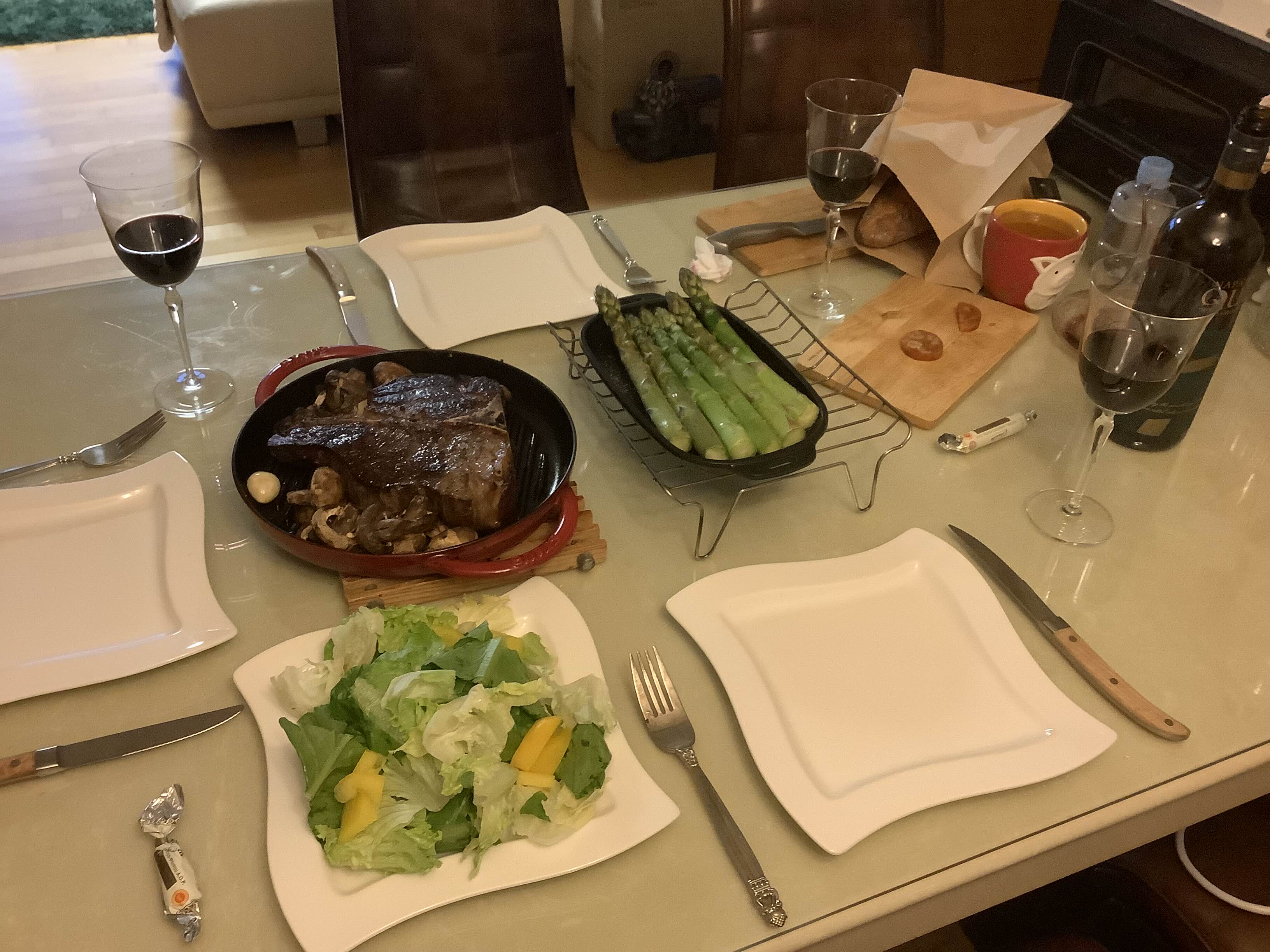 간만에 드라이에이징 1kg 티본 스테이크에 별난화린 농장 아스파라거스. 바게뜨는 교토 마블에서 하나 남았고 가격도 나쁘지 않길래 별 기대없이 충동구매 했는데 의외로 괜찮았다. 타르틴이나 오월의종 가기 힘들 때 대체제로 훌륭할듯.