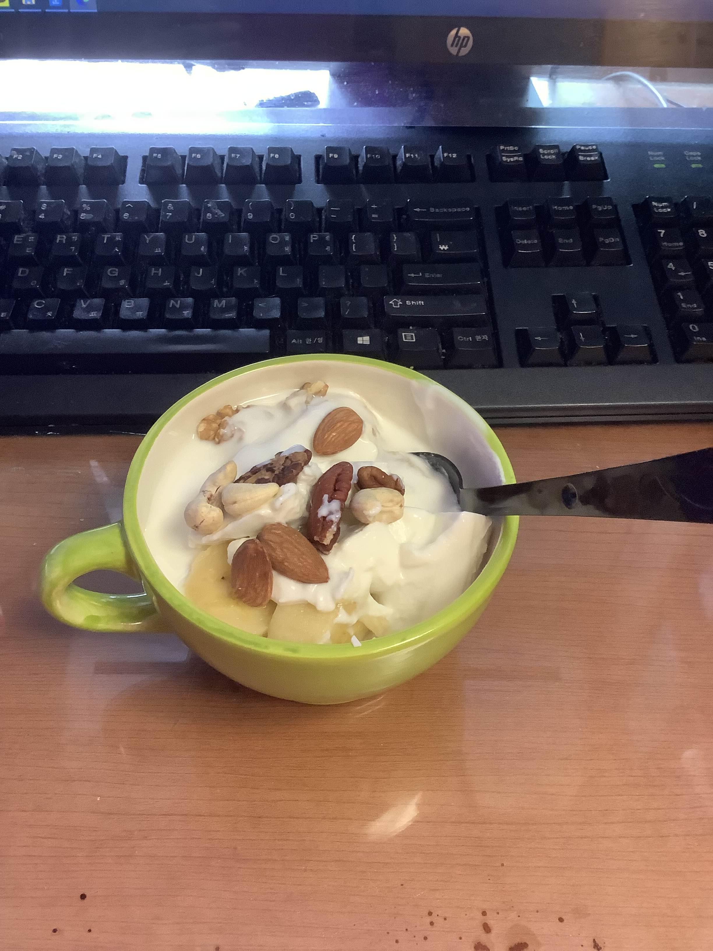 숨을 거두기 직전인 국산 바나나를 요거트에 투하.