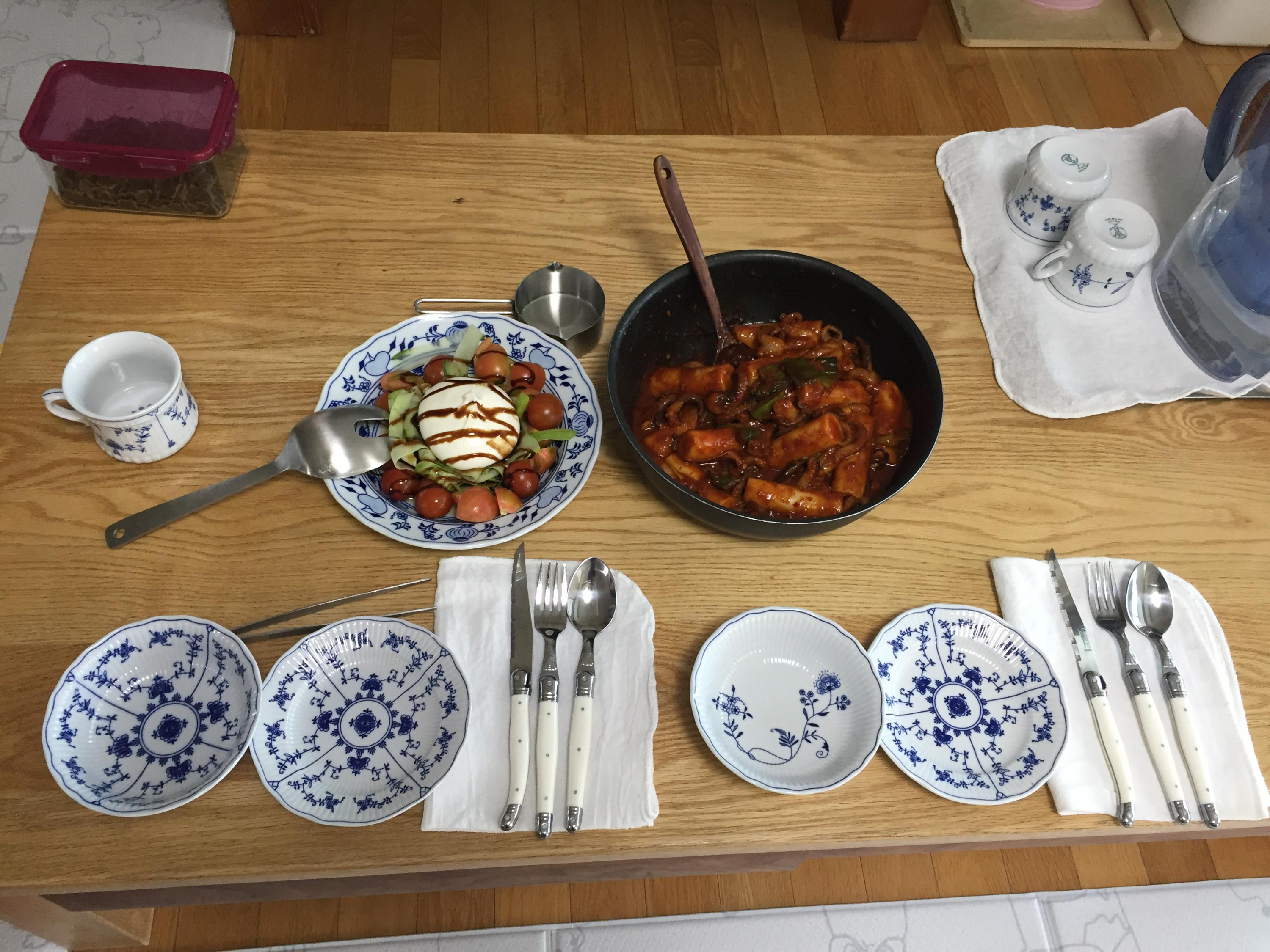 가면 끝없는 음식이 나오는 ㅇ씨의 쭈꾸미 떡볶이와 샐러드. 들기름 막국수랑 어묵탕도 맛있었고 줄줄이 나온 후식들도 엄청났는데 사진은 딱 시작할 때 이거 한 장. ㄸ군을 만지적거리면서 털짐승 지수를 채우는 행복한 오후였다.