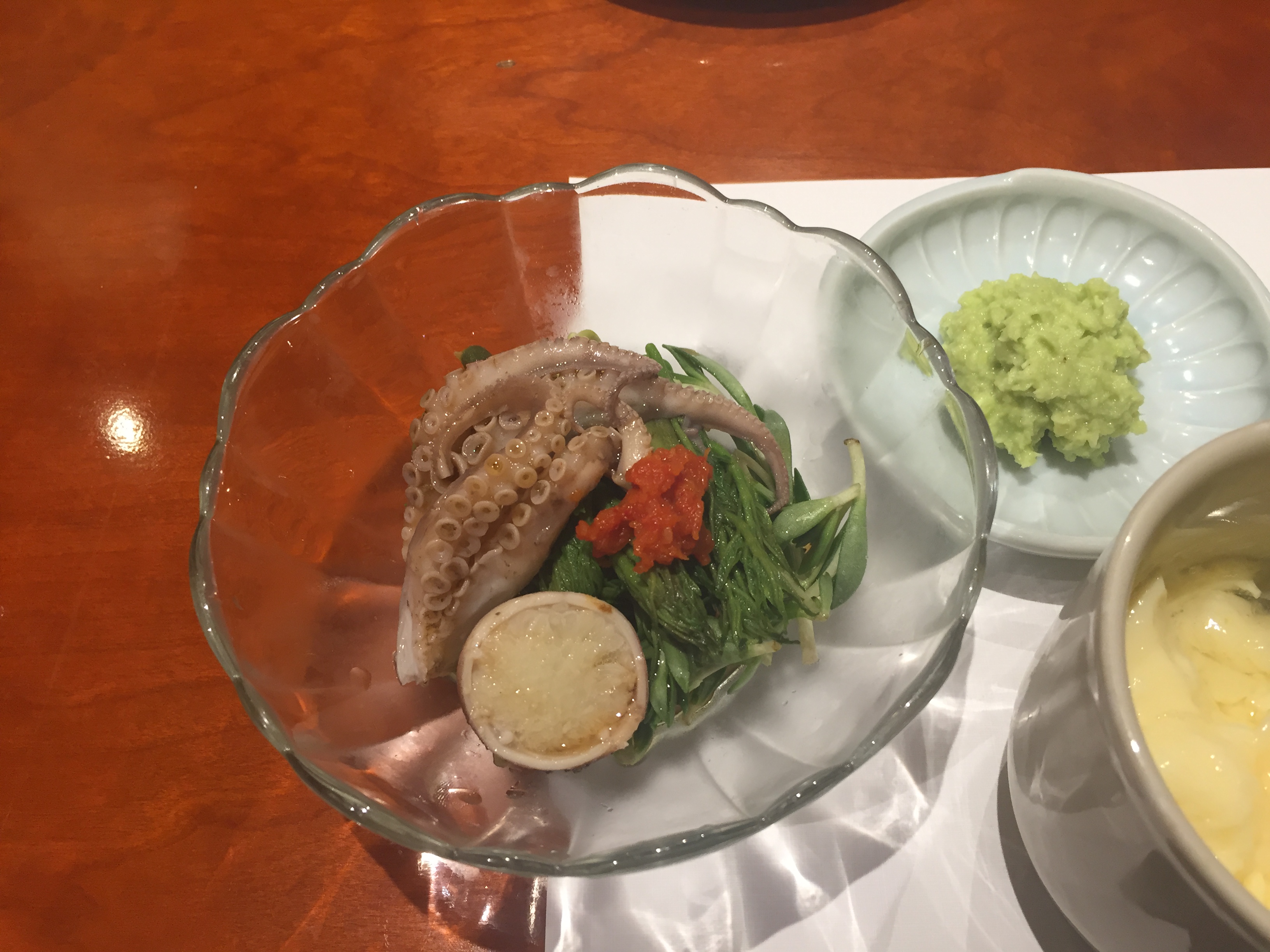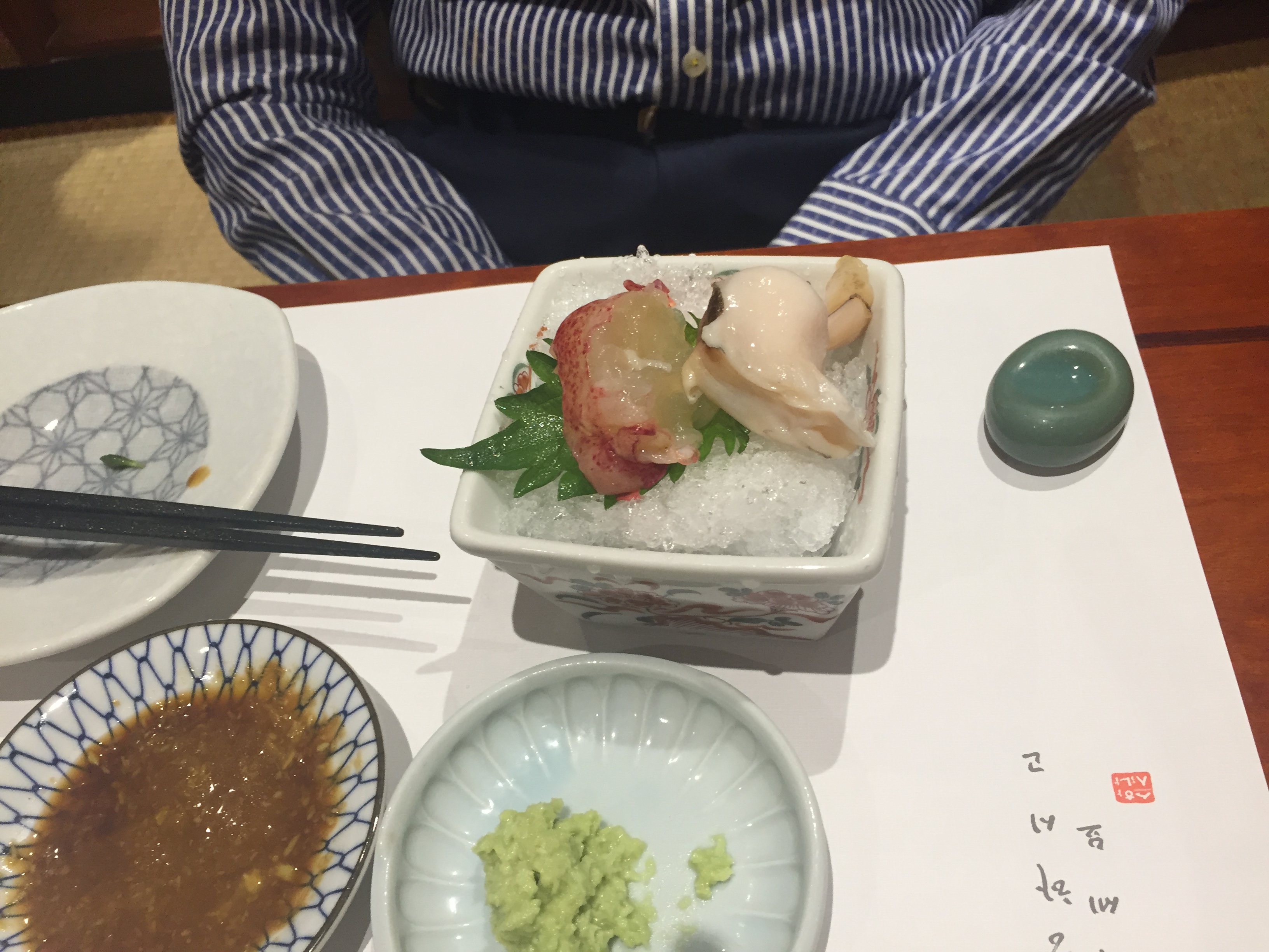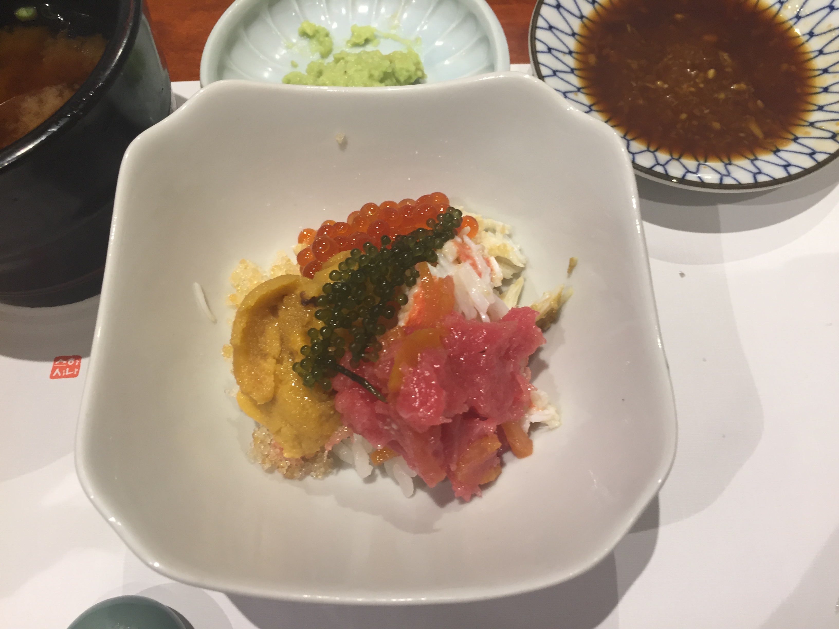 성게 미역국. 이 뒤로 복튀김이 나왔는데 사진 찍는 걸 잊었음. 그건 아예 안 건드리고 그냥 싸와서 다음날 저녁에 반찬으로 먹었다.