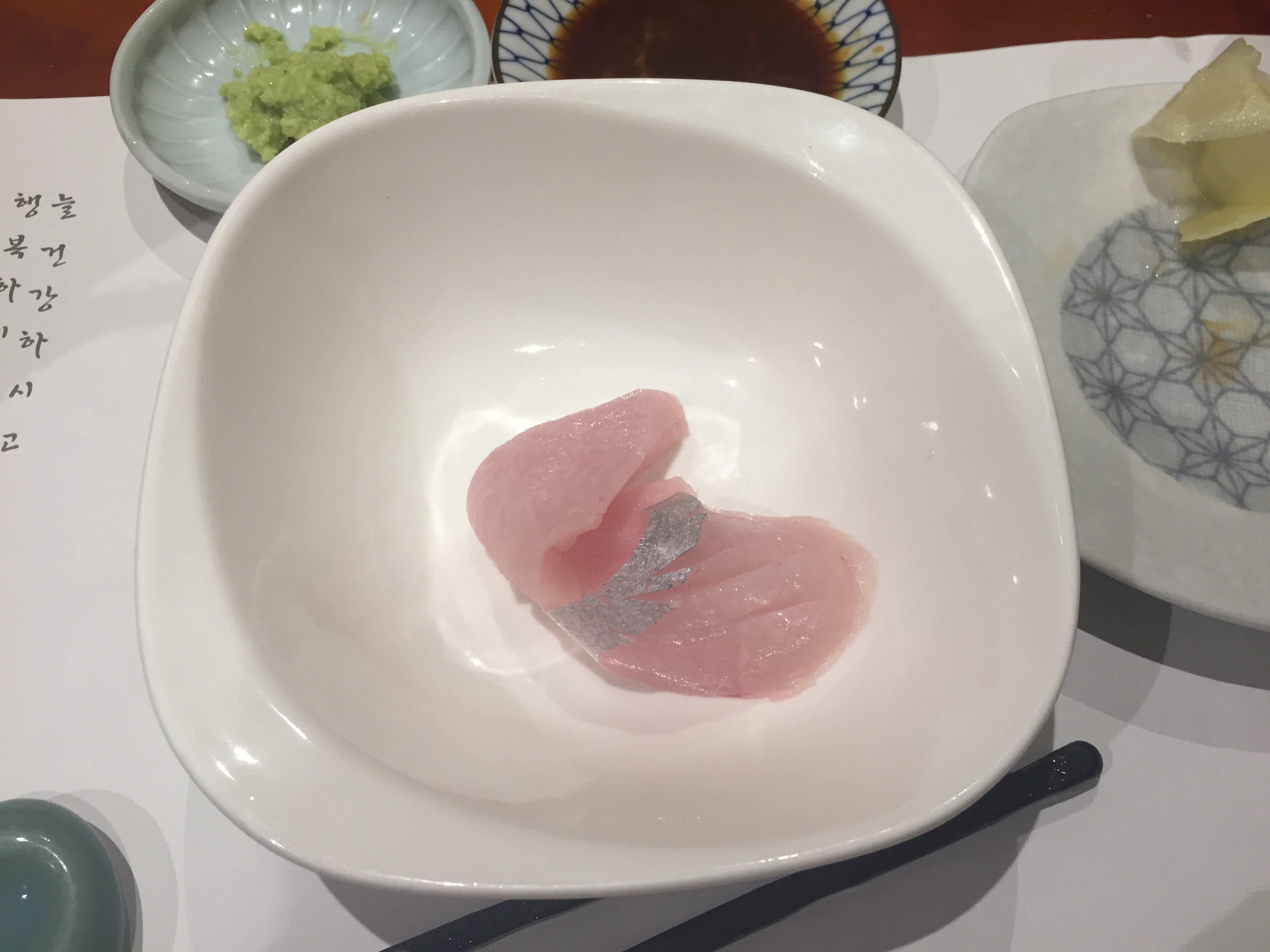이날 최고라고 다들 인정한 잿방어. 방어가 부드럽고 녹아내리는 식감인데 얘는 탱글탱글 씹히는 맛이 장난 아니다. 기름기도 상대적으로 적어서 더 우리 취향~