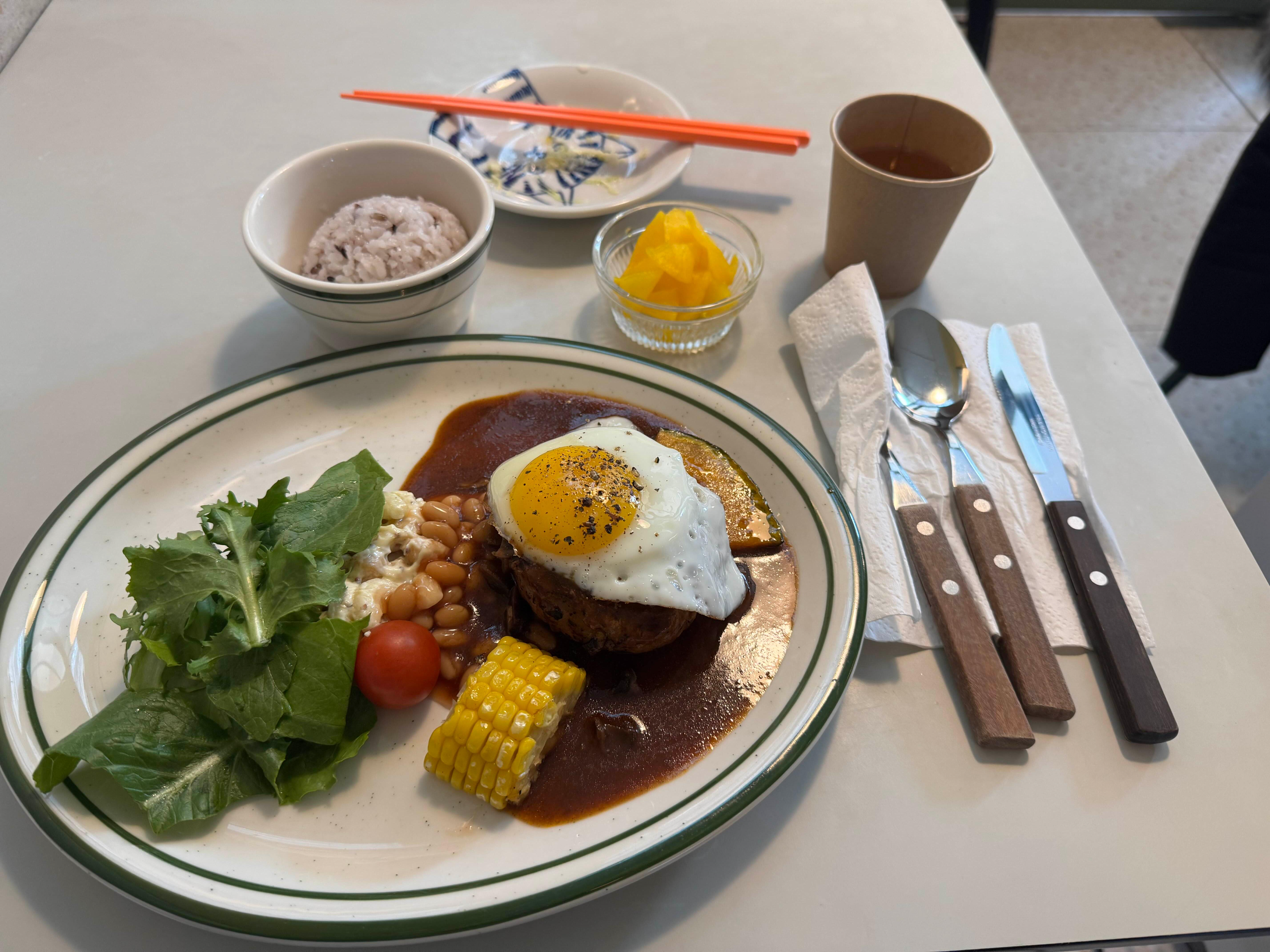 만석인데 1인은 가능해서 함박 정식 주문하고 착석.