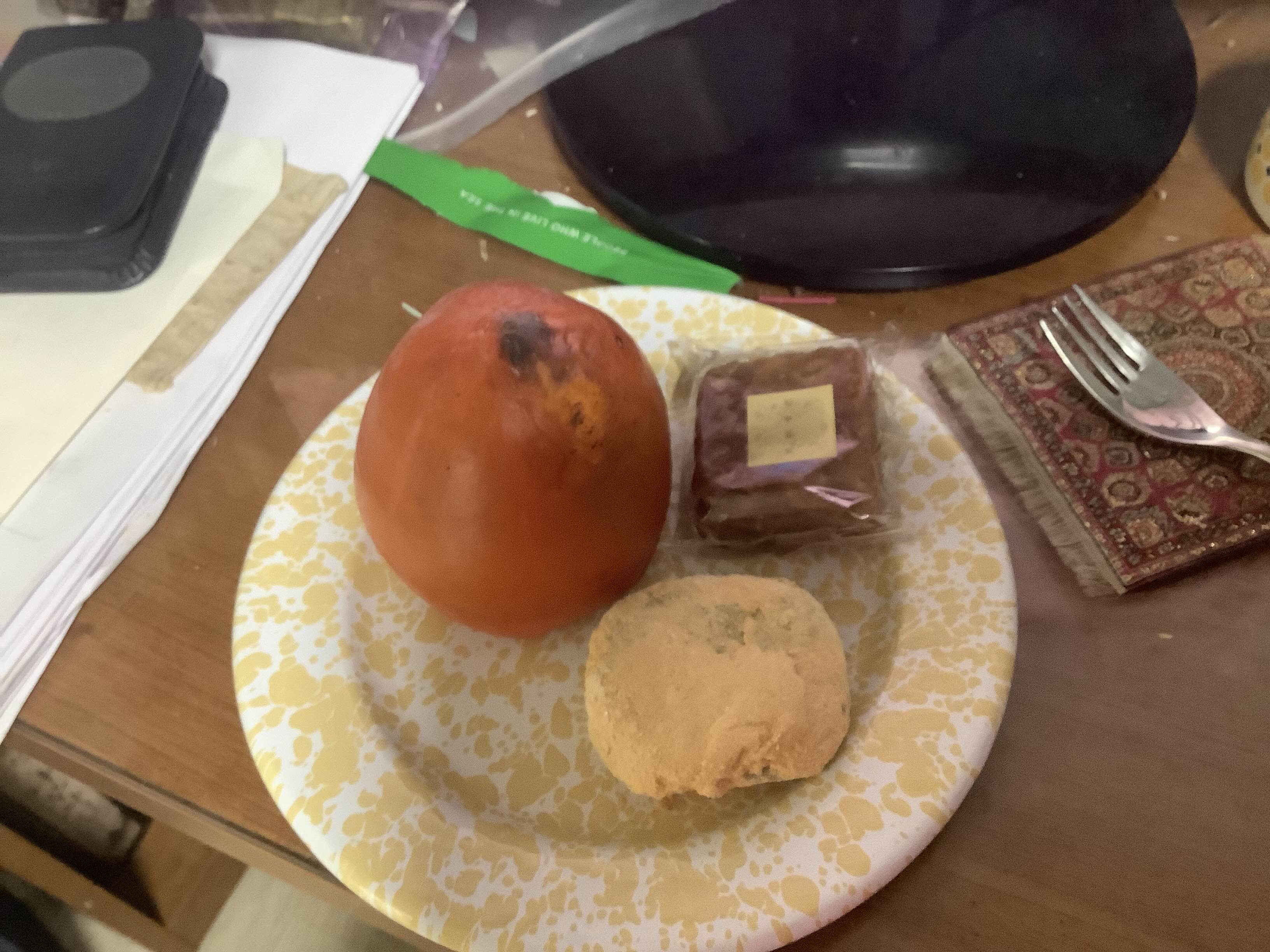 후식은 내 걸로 남겨 놓은 2024~2025 시즌 마지막 대봉감과 약과, 부친 친구분의 선물인 쑥찹쌀떡. 얼마만에 먹어보는 밀가루와 쌀가루인지. 감격 또 감격.