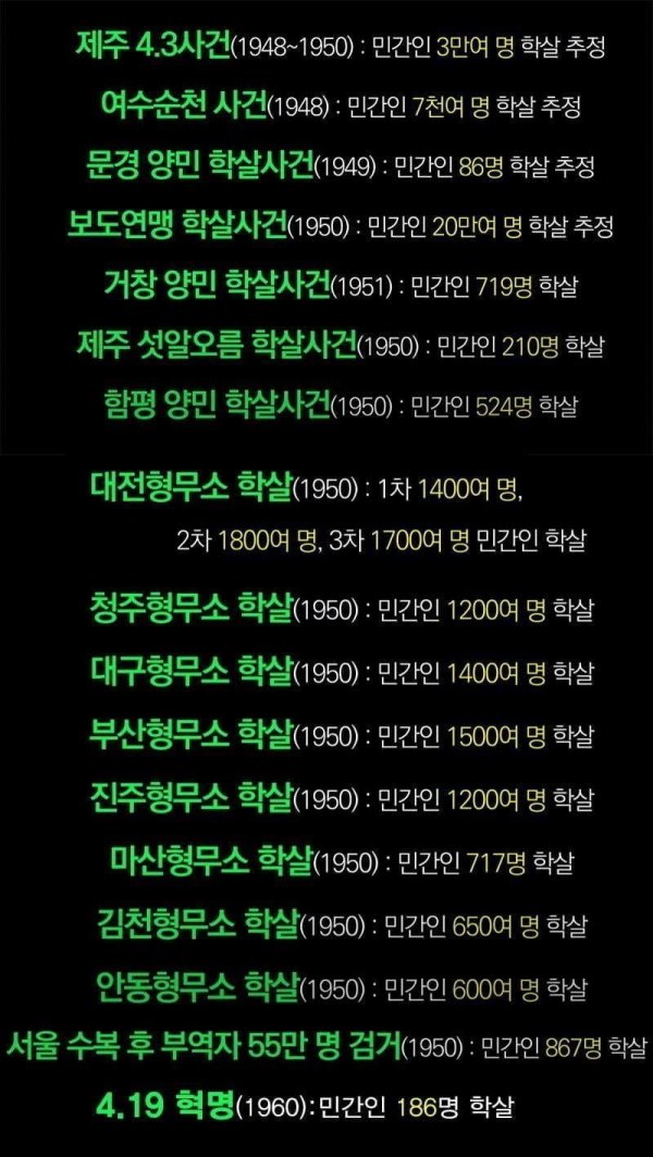 + 직접 학살까지는 아니나 하지 말란 거 바득바득 한 바람에 죽은 국민방위군 최소 1만명에서 최대 9만명 추정.