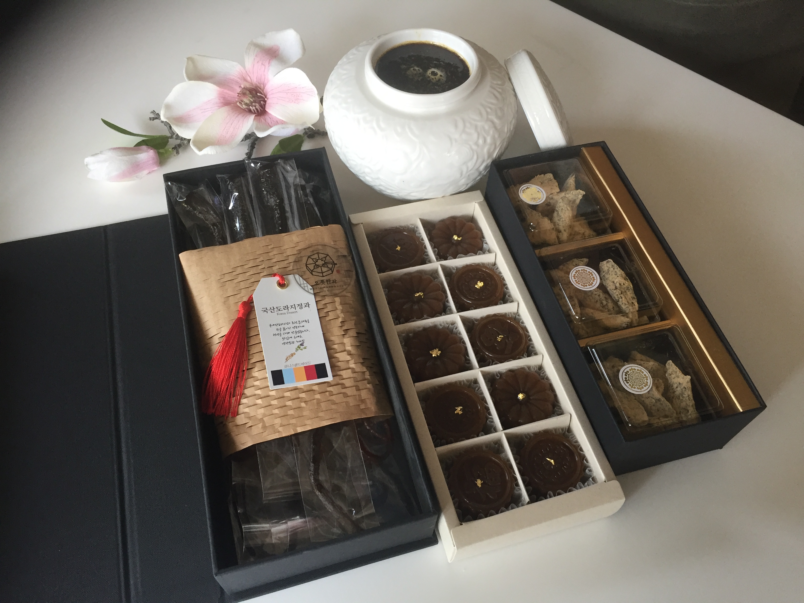 도라지청을 활용한 양갱, 콩가루를 묻힌 도라지 정과까지 추가해 완성한 세트. 가격대가 ㅎㄷㄷ한데도 이게 명절 때는 주문을 다 소화를 못 해서 못 팔 정도라니 먹는 걸 보면 점점 빈익빈부익부를 절감하게 됨.