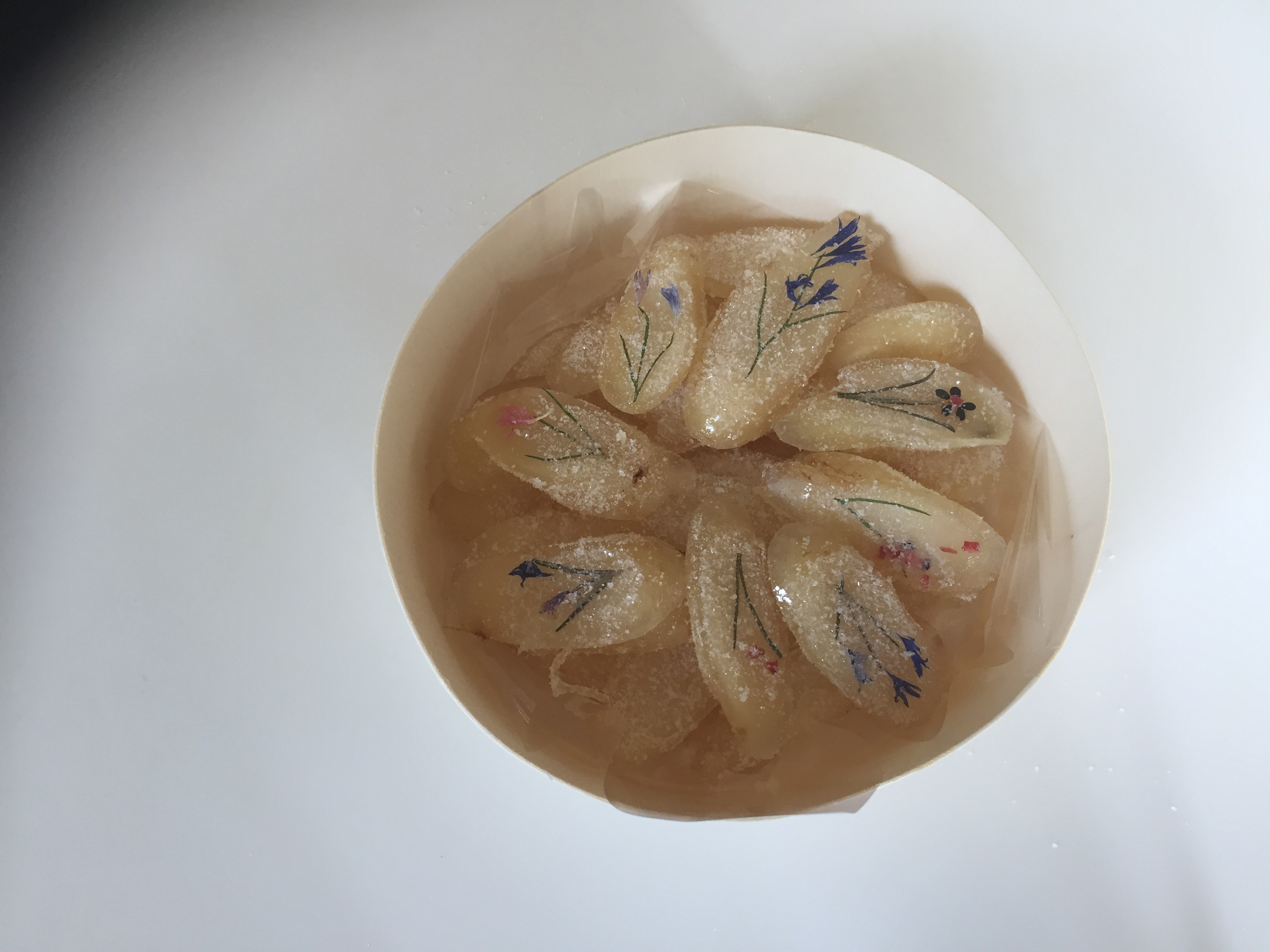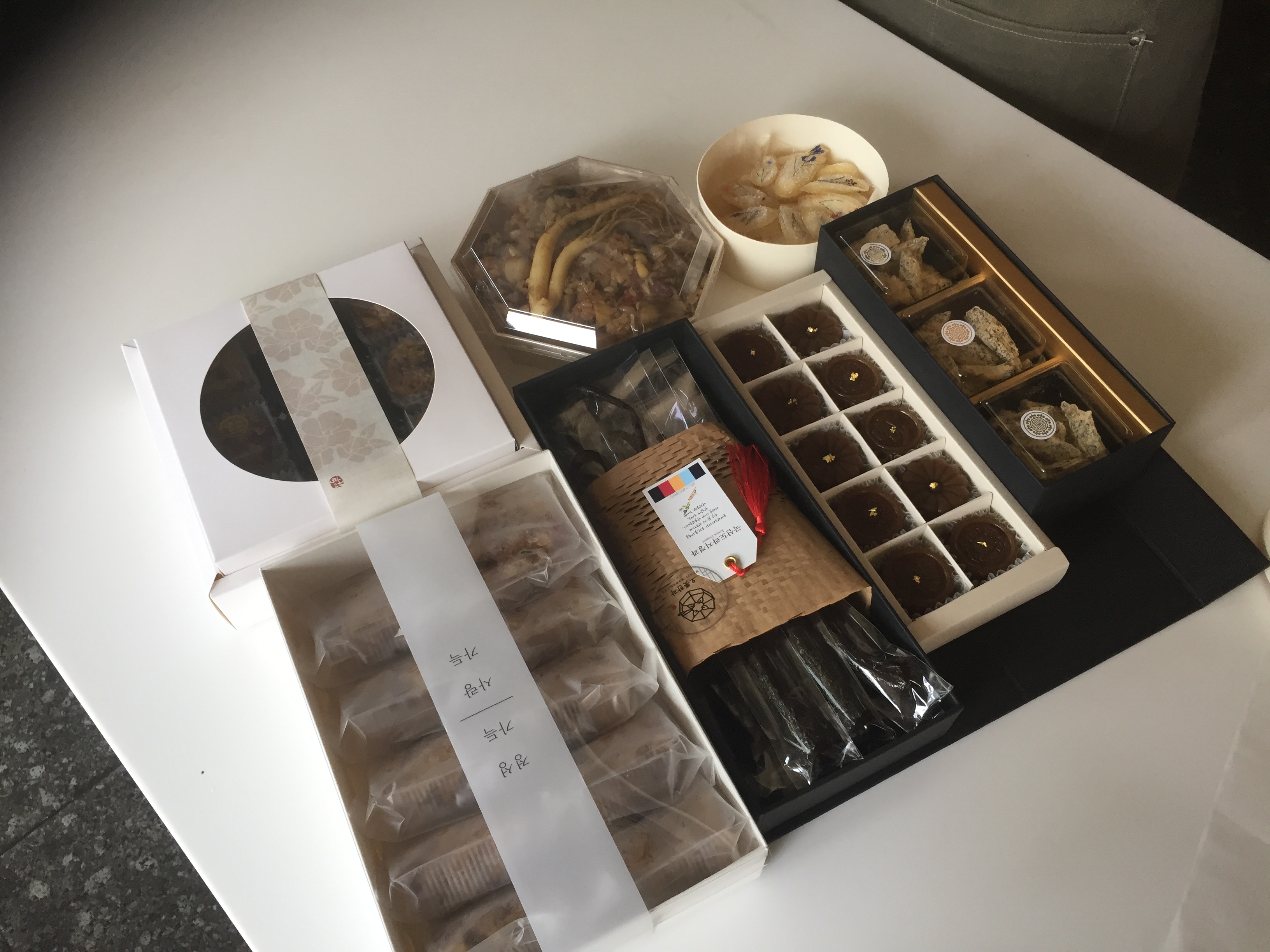 꽃과 이파리로 눈알이 빠지도록 모양을 낸 인삼 정과. 인삼 그다지 좋아하지 않는데 이건 적당히 달고 예쁘고 맛도 좋았음. 어르신 선물용으로 딱이지 싶다.
