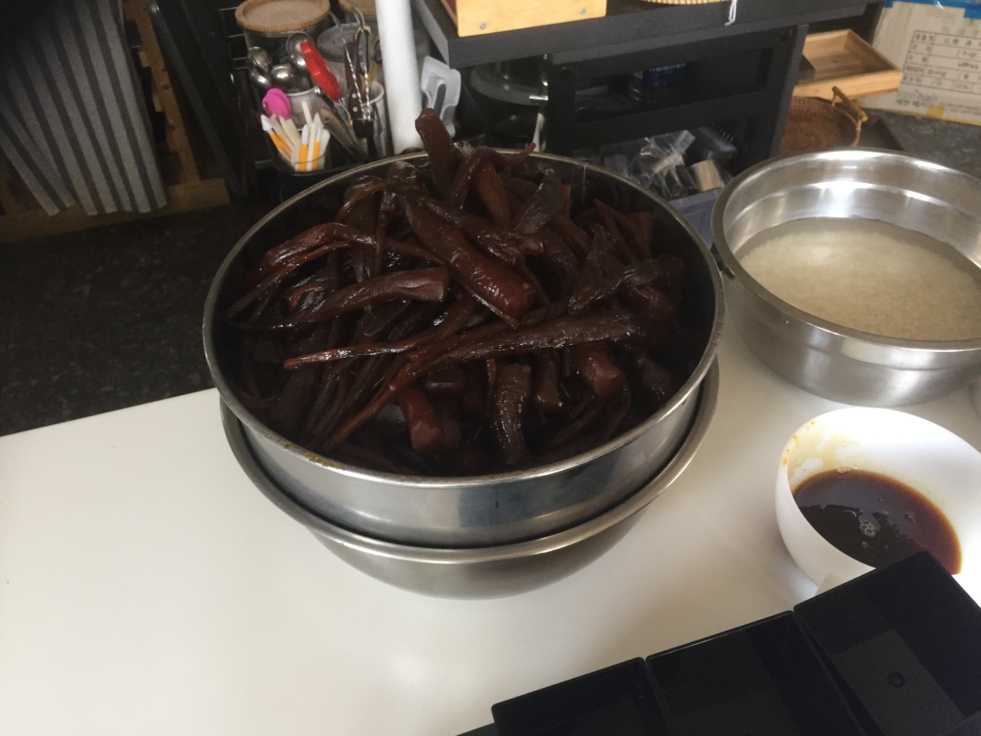 말린 해삼 불리기가 떠오르는 도라지 정과. 시작부터 완성까지 최소 5일 이상 길게는 1주일 소요. 시간이 걸릴 뿐이지 많이 귀찮거나 힘들지는 않아서 이것도 할만한듯. 특히 도라지 정과 만들 때 나오는 저 청은 쓰임새가 굉장히 많아 유용하다.