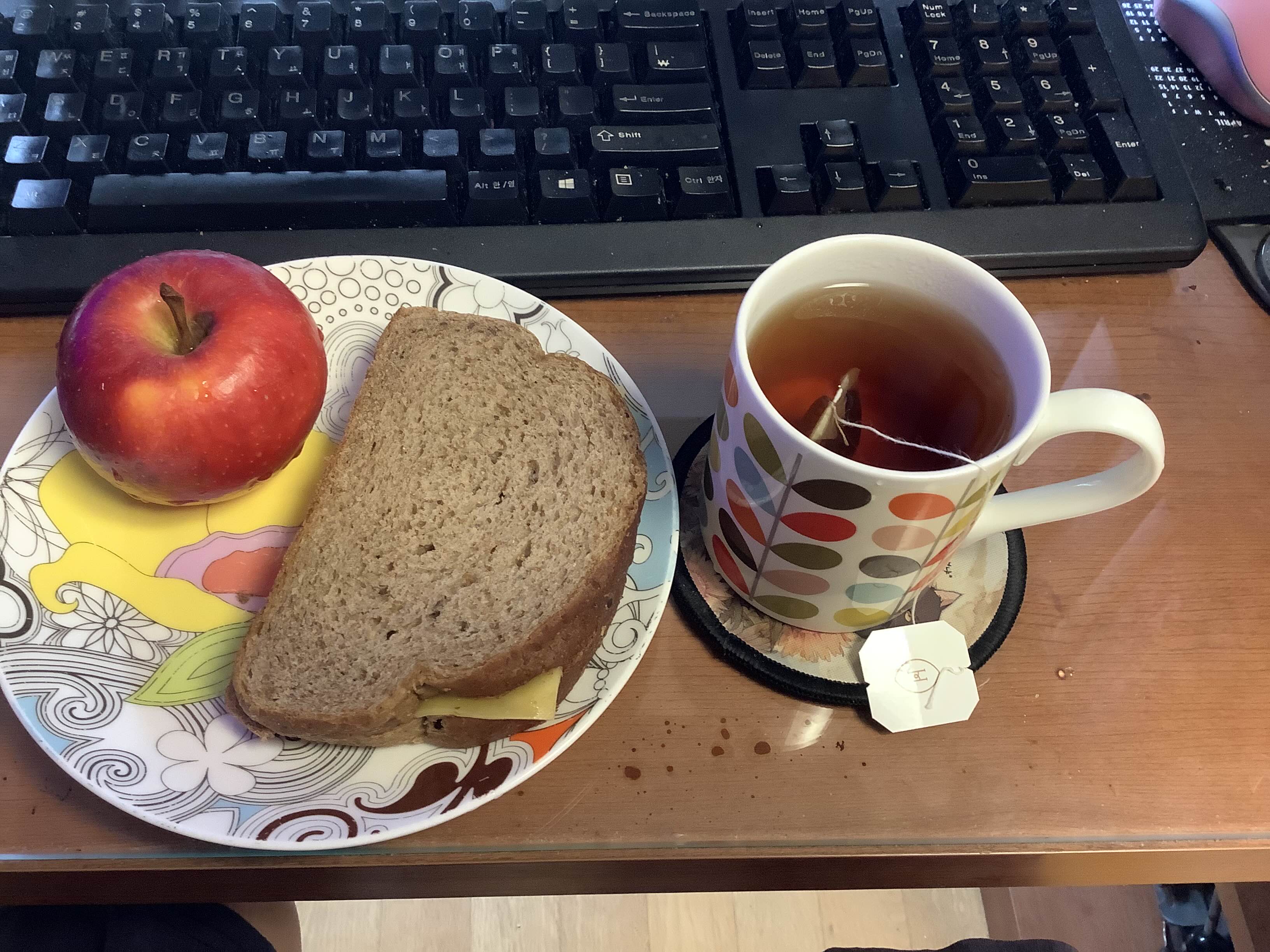 친구가 준 아주 맛있어 보이나 퍼석퍼석 내 인생 워스트 5에 들어간은 사과와 치즈 샌드위치에 다만 프레르(였나?) 잉블. 샌드위치는 호밀빵에 에멘탈 치즈 한장만 넣은 건데 역시 빵과 치즈가 맛있으니 다른 여러가지가 필요없음. 파프리카를 넣은 매콤한 스프레드가 화룡정점이었다. 그 스프레드는 종종 만들어서 먹어야겠다.