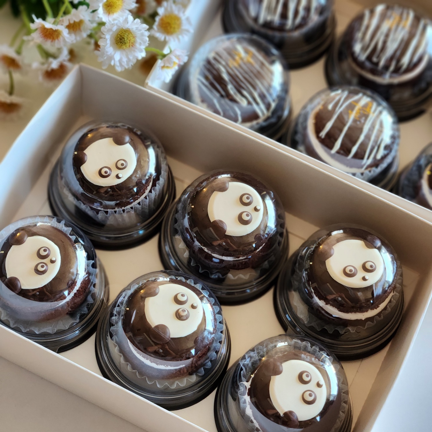초코파이도 속에 든 마시멜로까지 다 직접 만든 럭셔리. 팬더 머리 하나에 자그마니 500원!!! 이라고 함. 팬더 초코파인 바닐라 마시멜로, 그냥 줄무늬 넣은 초코파이는 커피 마시멜로가 들어서 맛이 각기 다름. 직접 만든 마시멜로라 쫀쫀 + 쫀득한 풍미가 장난 아님.