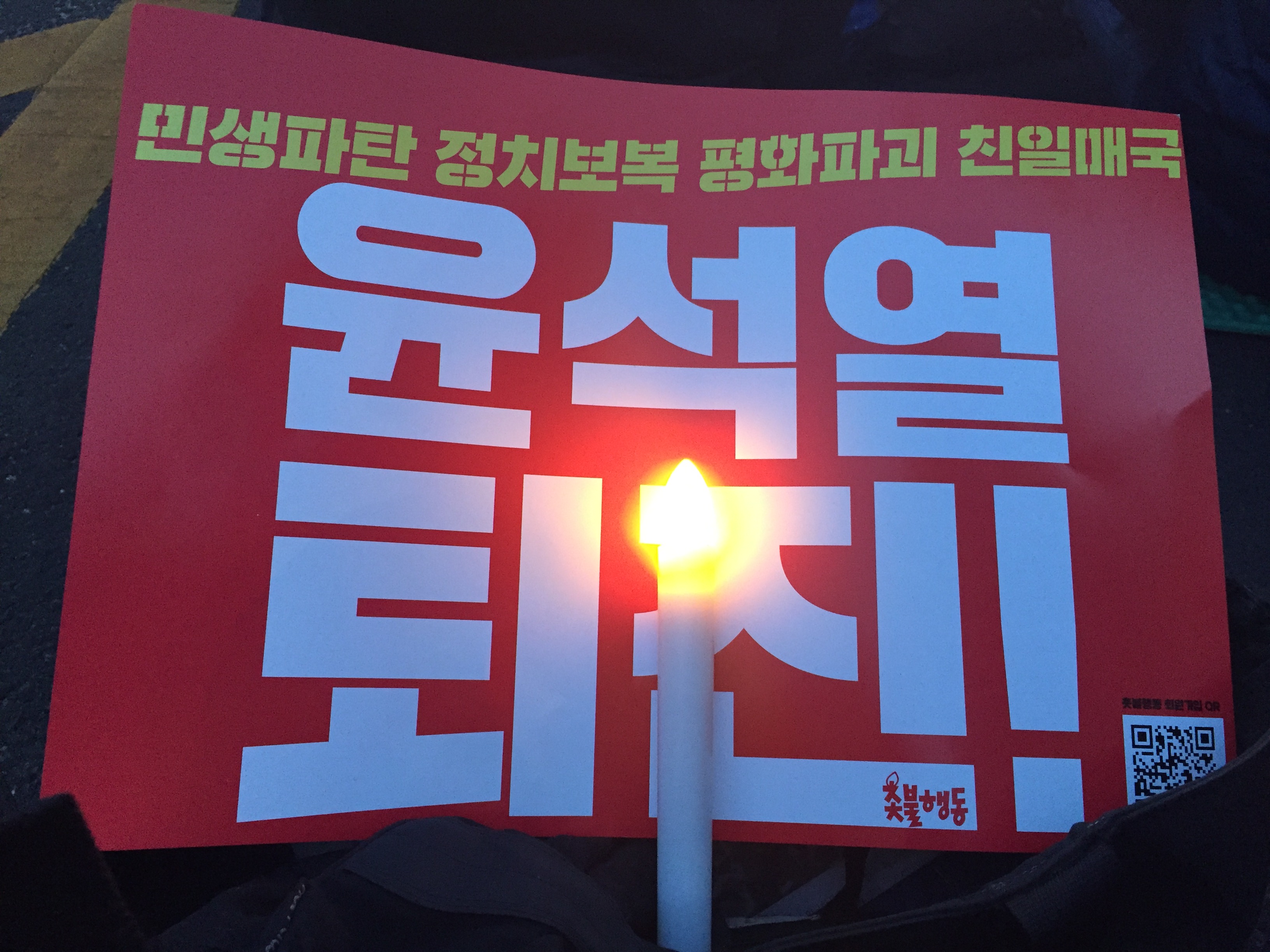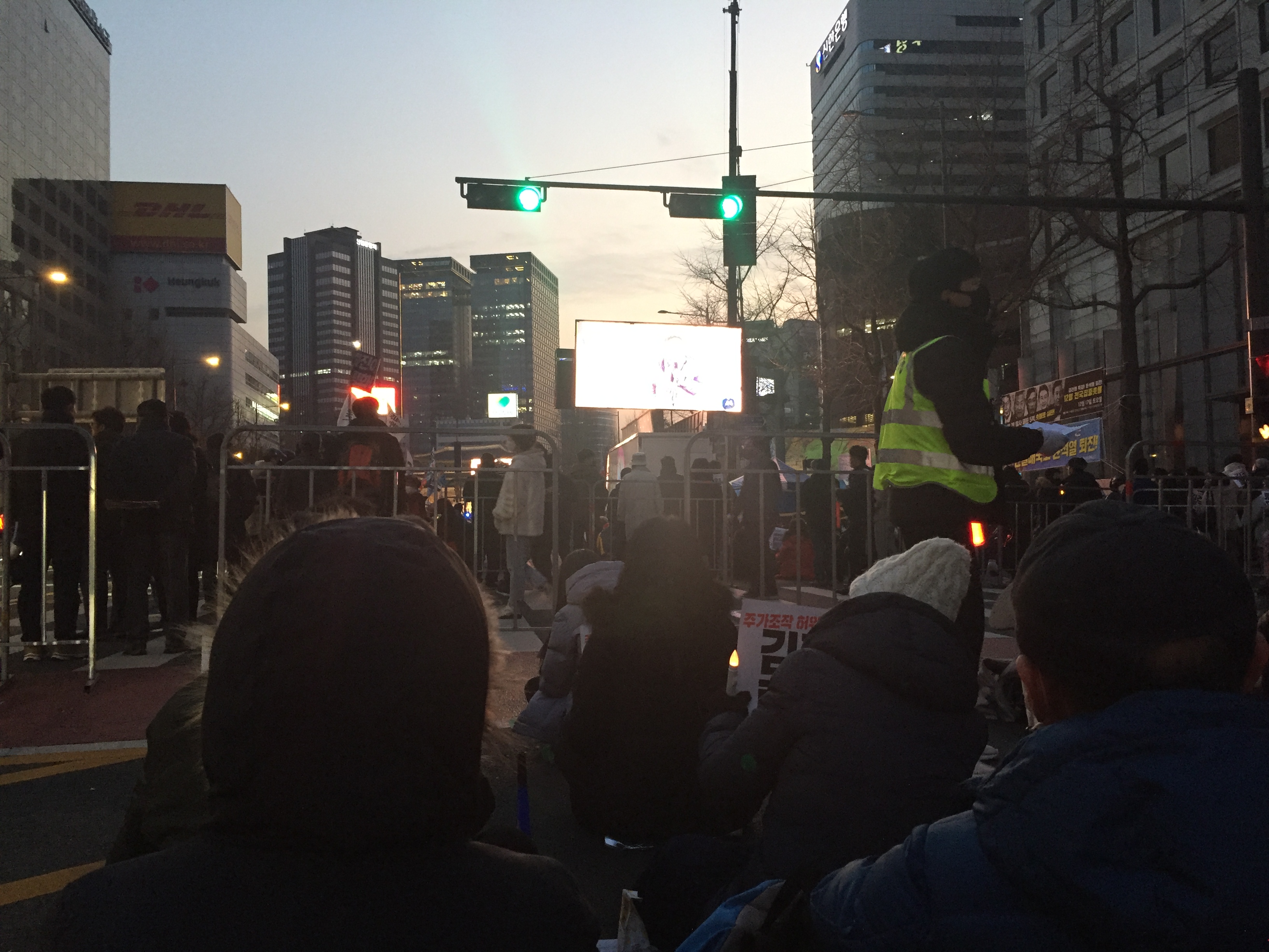 하나님~ 예수님~ 전광훈 목사님~을 외치는 할아버지들을 뒤로 하고 슬슬 걸어서 촛불집회 장소로. 명동-> 광화문까지 행진하고 돌아와서 해산. 행진 중에 ㅇ의 남편님 합류.