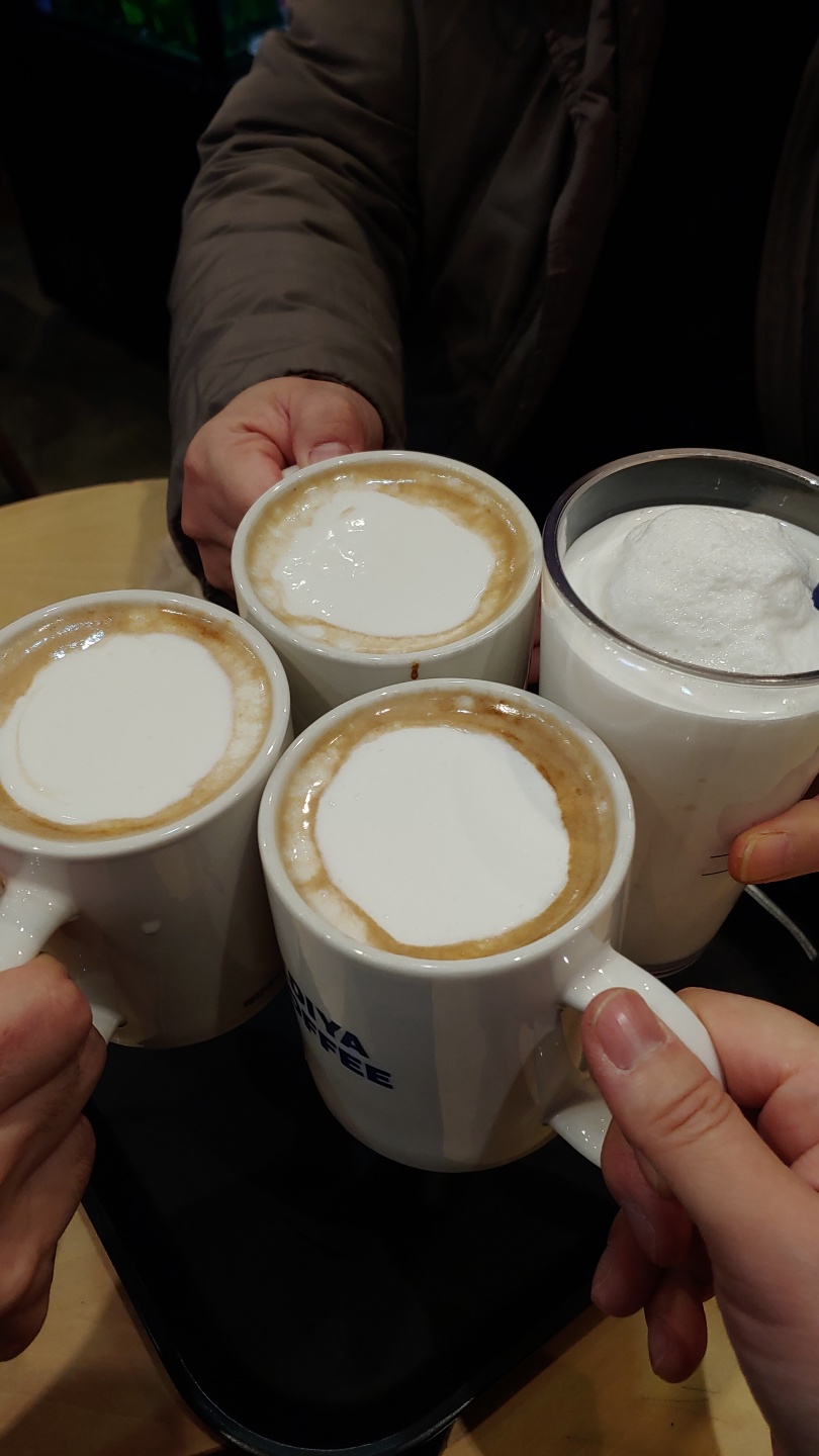 스벅은 가능한 안 가는 사람들이라 스벅을 피해서 빈 자리가 있는 카페로 들어가서 한잔씩. 여기는 왜인지 모르겠으나 그냥 ㅎ이 냈음. 잘 마셨어~ ^^