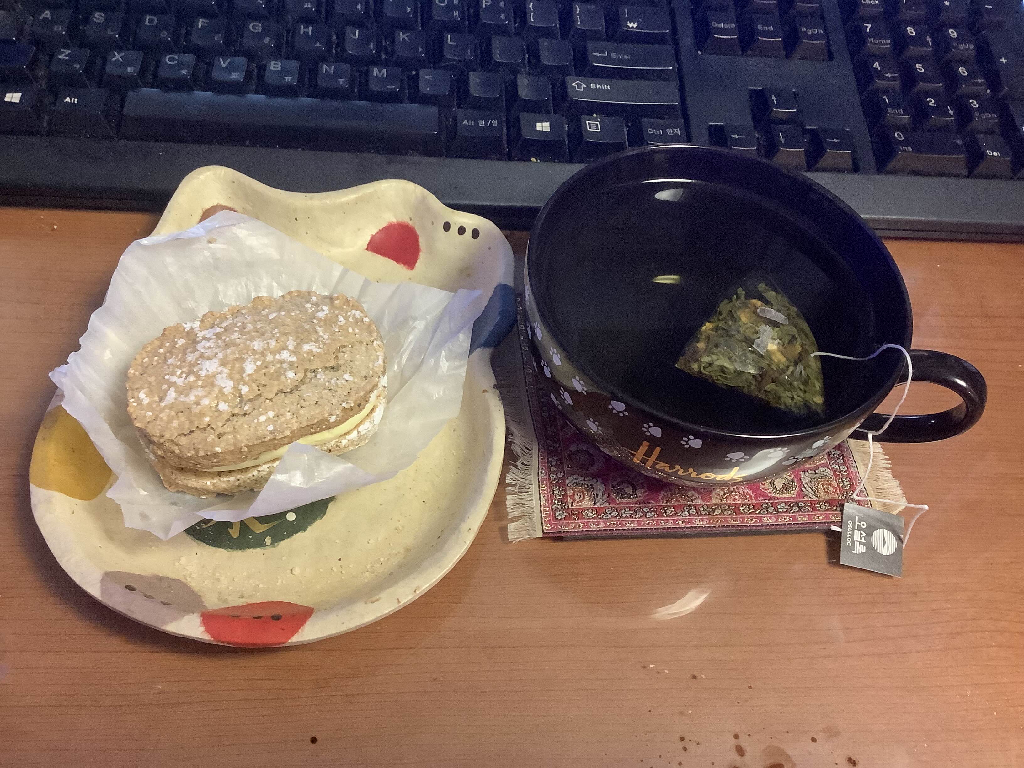 동생의 끌레오르 쿠키로 오후의 홍차.