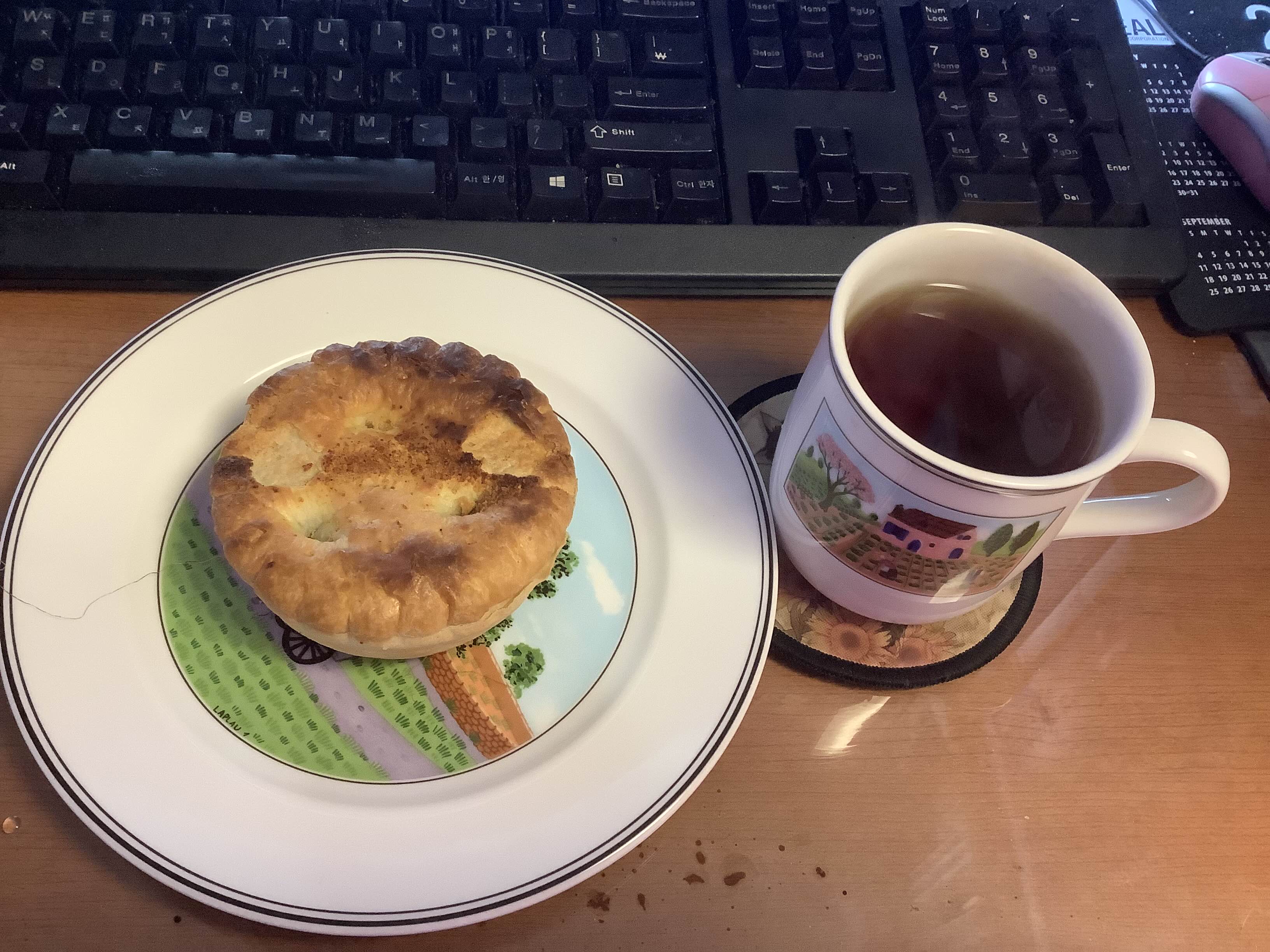 냉동실에서 발굴한 DAD'S PIE의 앵거스칠리치즈파이 & 해로즈 잉블 홍차. 뉴질랜드에서 급식으로 많이 쓴다는 냉동 고기파이인데 어지간한 전문점보다 더 나음.