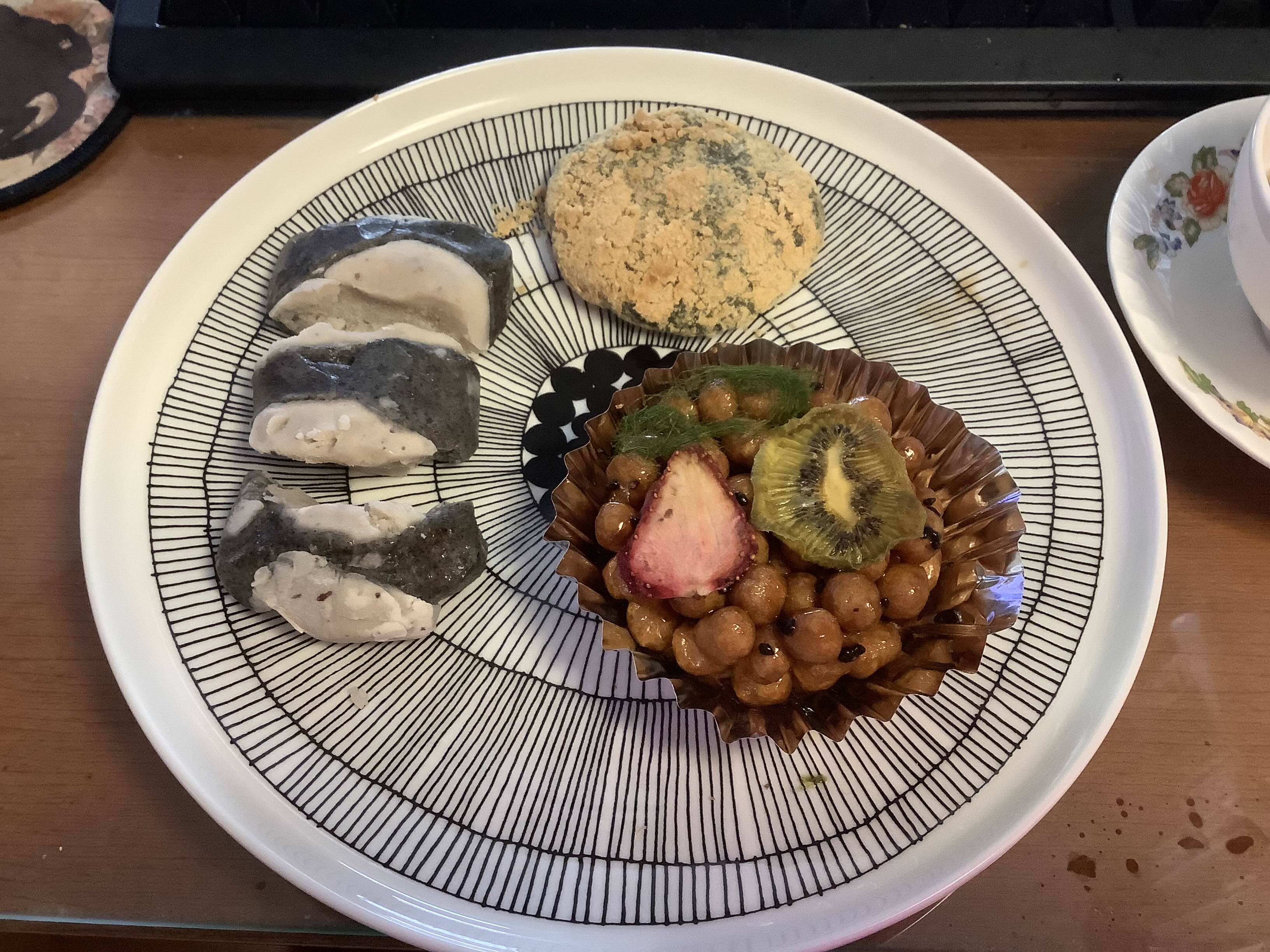 강남 신세계 지하떡집에서 사온 두텁떡...이라고 주장하는 정체불명의 떡과 녹차. 동부 고물에 계피맛이 조금 나는 것말고는 들어가야할 게 하나도 없음. 진짜 두텁떡 좀 먹고 싶다. 싸지도 않으면서 왜 두텁떡이란 고귀한 이름을 모독하는지 원. 😣