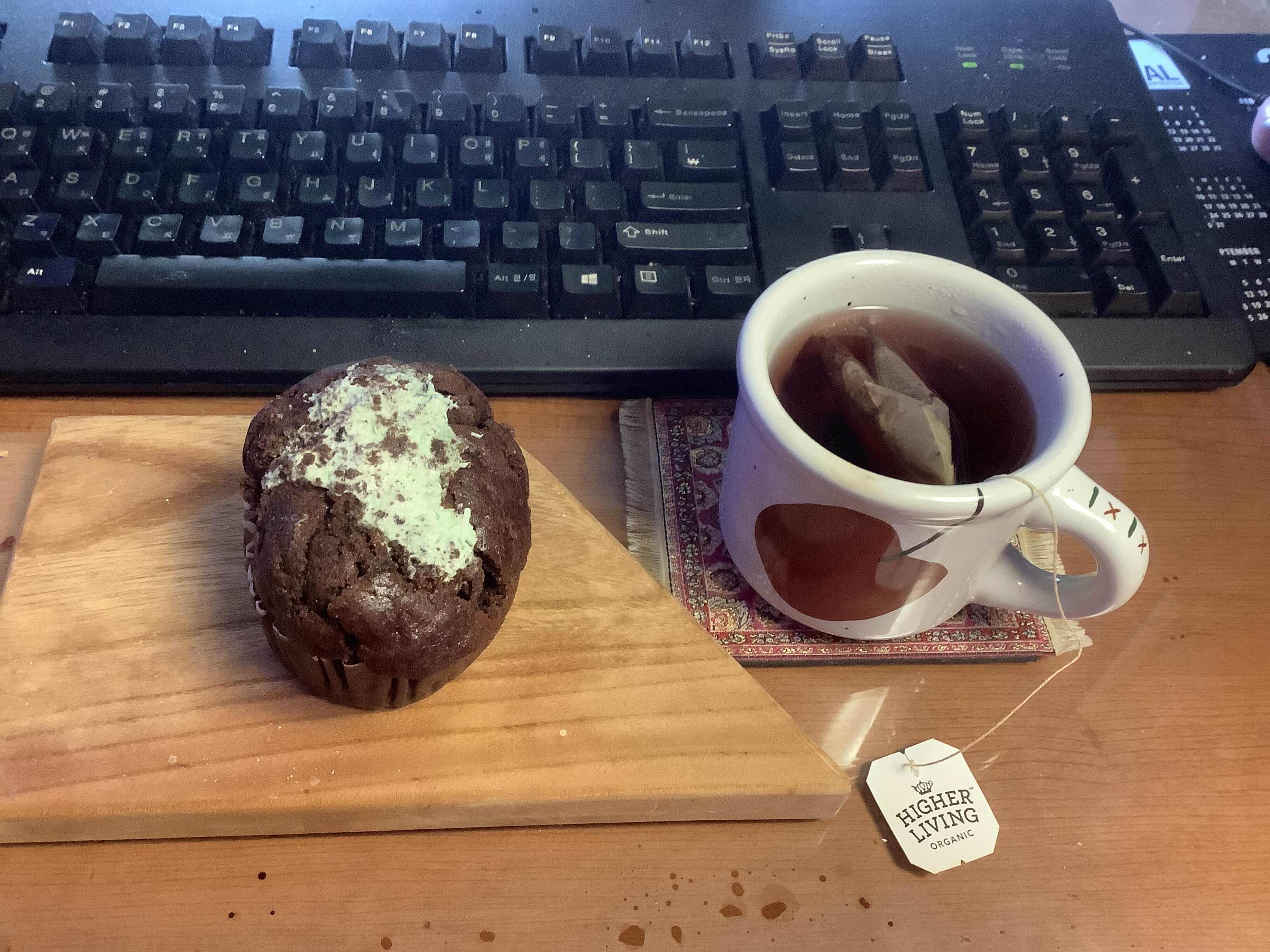 3월 마지막 날 오후의 간식 홍차는 오래락의 민트초코머핀과 베리 티. 안 어울릴듯하면서도 잘 어울린다. 민트초코 싫어하는 사람들은 보기만 해도 😱😱😱 하겠지만 난 민초 아이스크림부터 다 좋아하니까 해피한 차시간이었음.