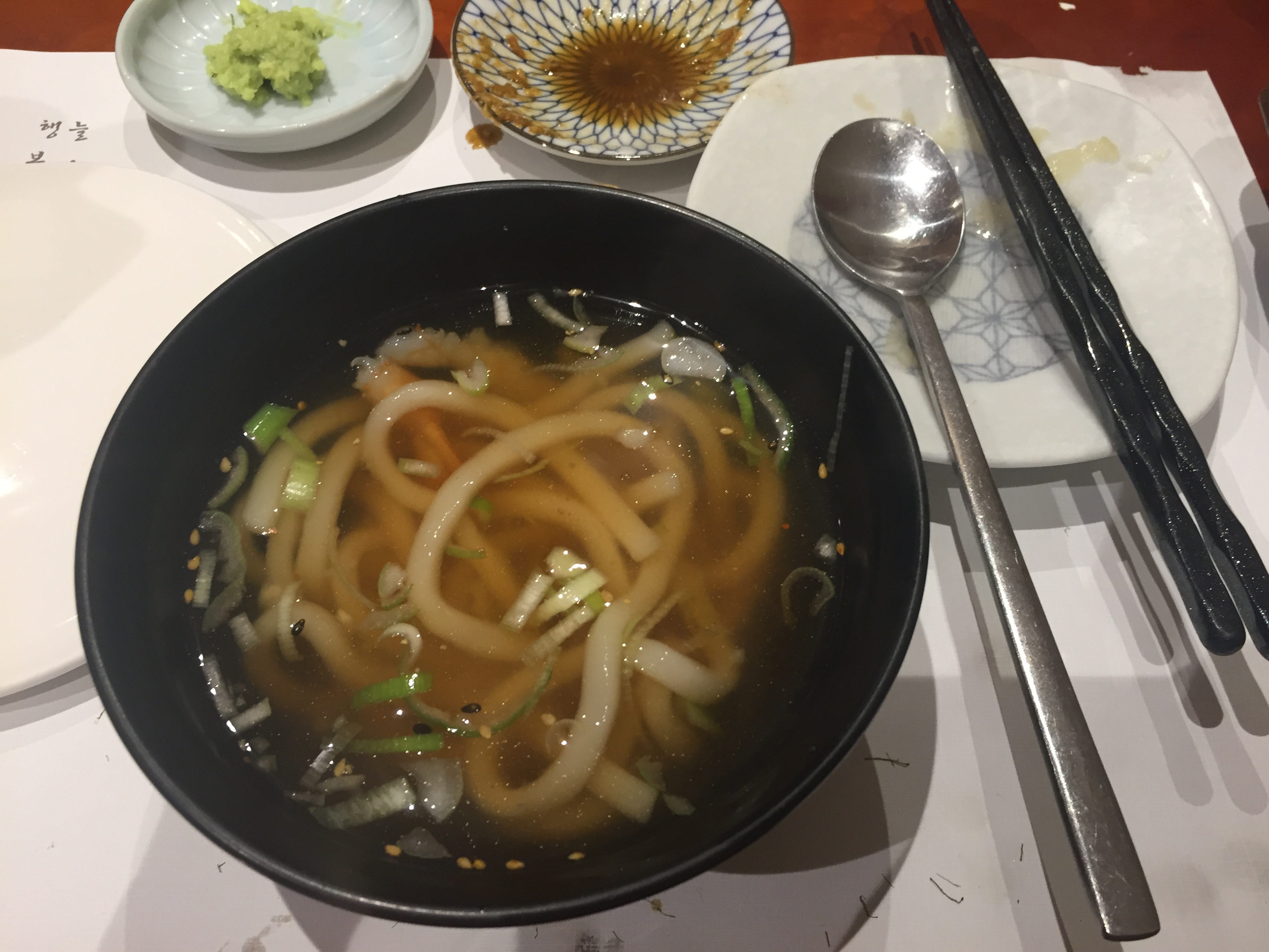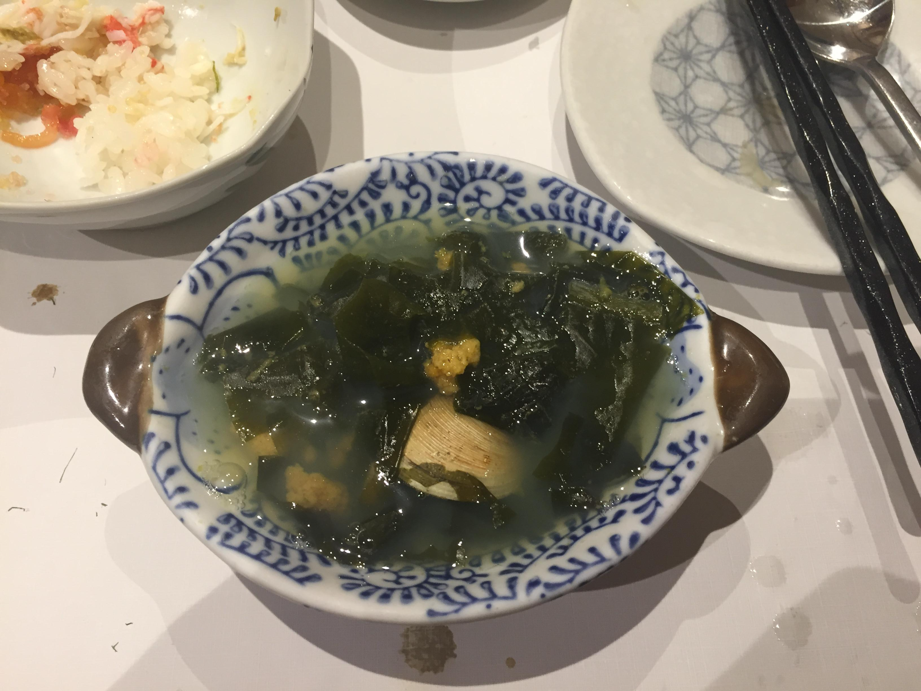 성게 미역국. 이 뒤로 복튀김이 나왔는데 사진 찍는 걸 잊었음. 그건 아예 안 건드리고 그냥 싸와서 다음날 저녁에 반찬으로 먹었다.