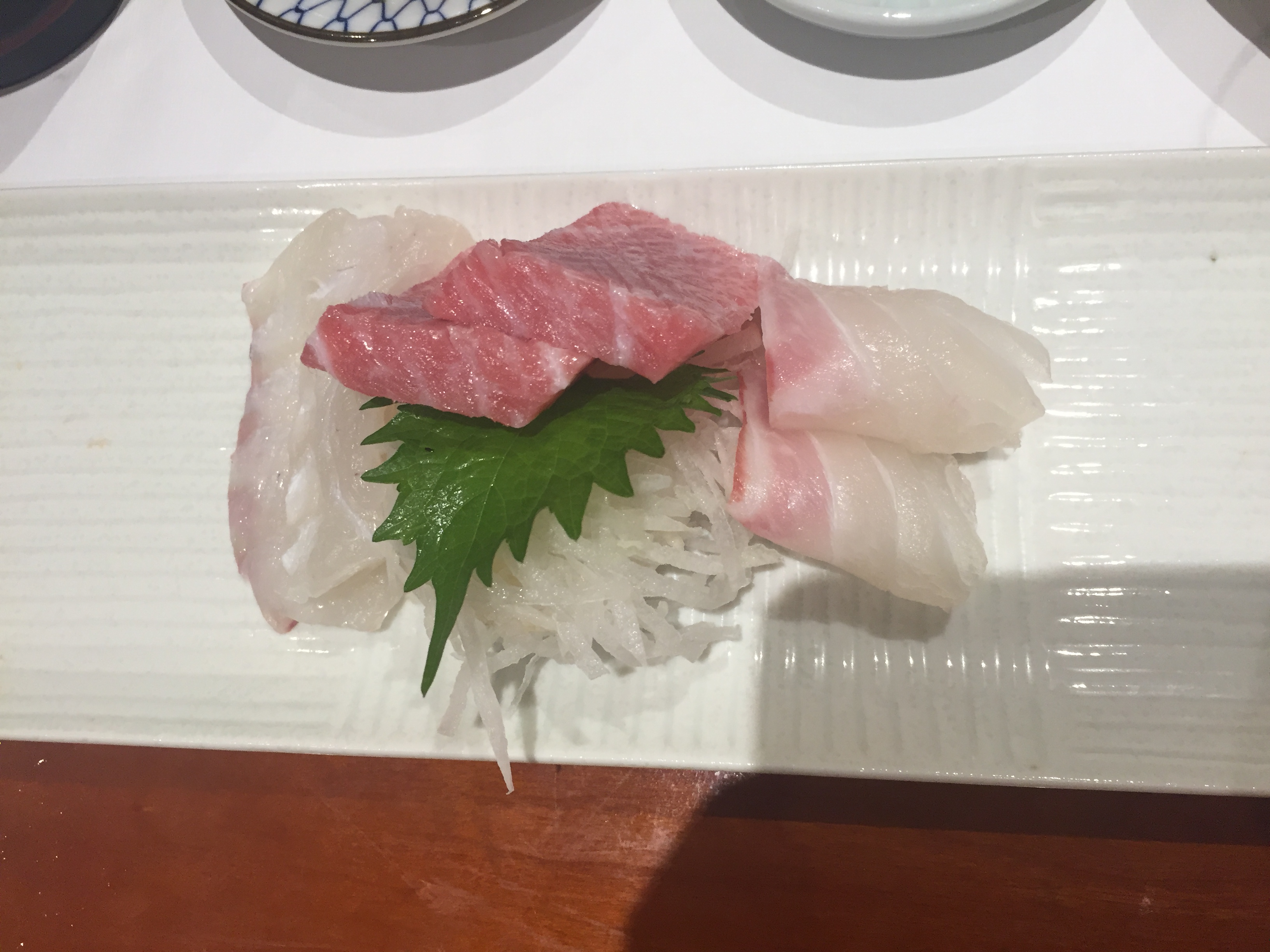 회정식의 참치 대뱃살, 광어, 도미 회.